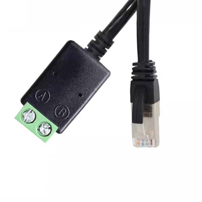 - Connected to a black plastic housing, the green screw terminals facilitate secure wire connections for RS485 communication, supporting 2-pin and 4-pin setups for versatile CCTV and networking applications.