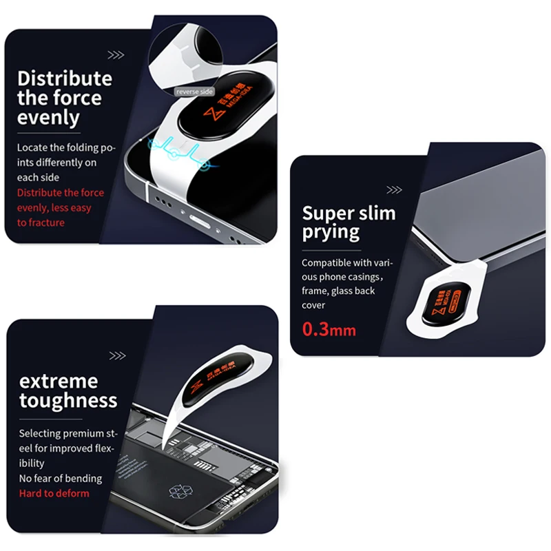 - Features a sleek, polished surface with no burrs, ensuring safe removal of LCD screens and glass back covers without damage.