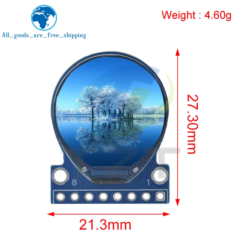 Experience vibrant visuals with this compact 0.71-inch round TFT LCD display module, featuring a high-resolution 128×160 pixel screen driven by the efficient GC9A01 driver IC. The module’s smooth, reflective glass surface enhances color brightness, displaying rich greens, yellows, blues, and oranges to bring natural and scenic images vividly to life. Designed with an 8-pin SPI interface and mounted on a durable PCB, it ensures easy integration into your projects. Available in configurations of one or three pieces, this versatile display is perfect for compact electronics, wearables, or custom visual interfaces, offering excellent color quality and reliable performance for your creative endeavors.