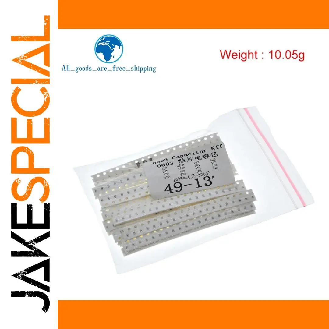 - This kit includes 320 surface-mount ceramic capacitors, with 20 pieces for each of the 16 values, covering 10pF to 22µF, suitable for electronic project versatility and precision.
