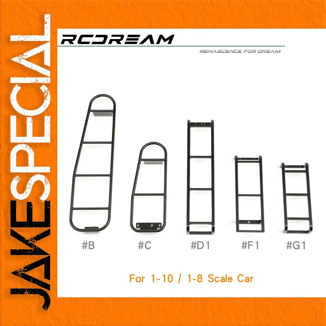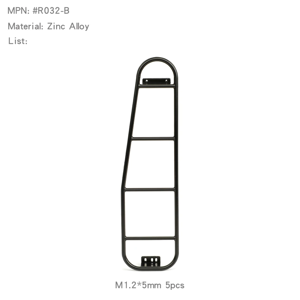 Enhance your scale RC vehicle with this durable metal side tail ladder, designed for 1/10 and 1/8 scale models such as TRX4, SCX10, Wrangler, Defender, and YK4083. Crafted from black-finished metal, it features five distinct styles in colors B, C, D1, F1, and G1, offering sleek, minimalist aesthetics with smooth curves and clean lines. Perfect for rugged off-road adventures, this non-electric accessory is suitable for users aged 14 and above. Easy to attach, these ladders combine functionality with a modern industrial look, making your remote control car stand out while adding realism and practical detail to your custom build.