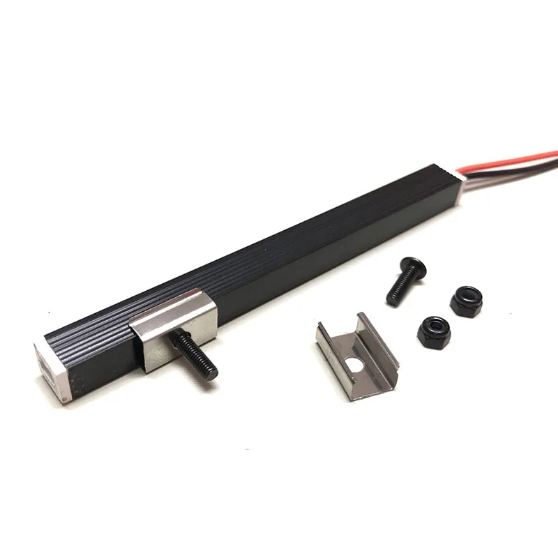 Experience a sleek, high-performance lighting upgrade for your 1/10 RC crawler. Crafted from durable black aluminum alloy, this slim LED strip combines industrial style with advanced functionality. Measuring approximately 10 centimeters, it features integrated LEDs recessed into the streamlined surface for a seamless look. When illuminated, it emits a vivid red or bright white glow, enhancing your vehicle's visibility and aesthetic. Designed for easy installation, it connects effortlessly to a 5V or 6V power supply using the included wiring harness and plug. Its rugged construction and modern design elevate your RC crawler’s appearance while offering reliable lighting performance. Perfect for customizing or replacing stock tail lights for a more aggressive, professional look.