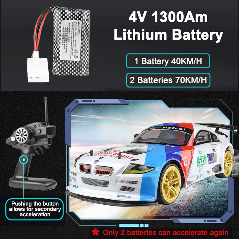 - Reaches top speeds of approximately 70 km/h using dual 7.4V 1300mAh lithium-ion batteries, ideal for racing, drifting, and high-speed off-road adventures.