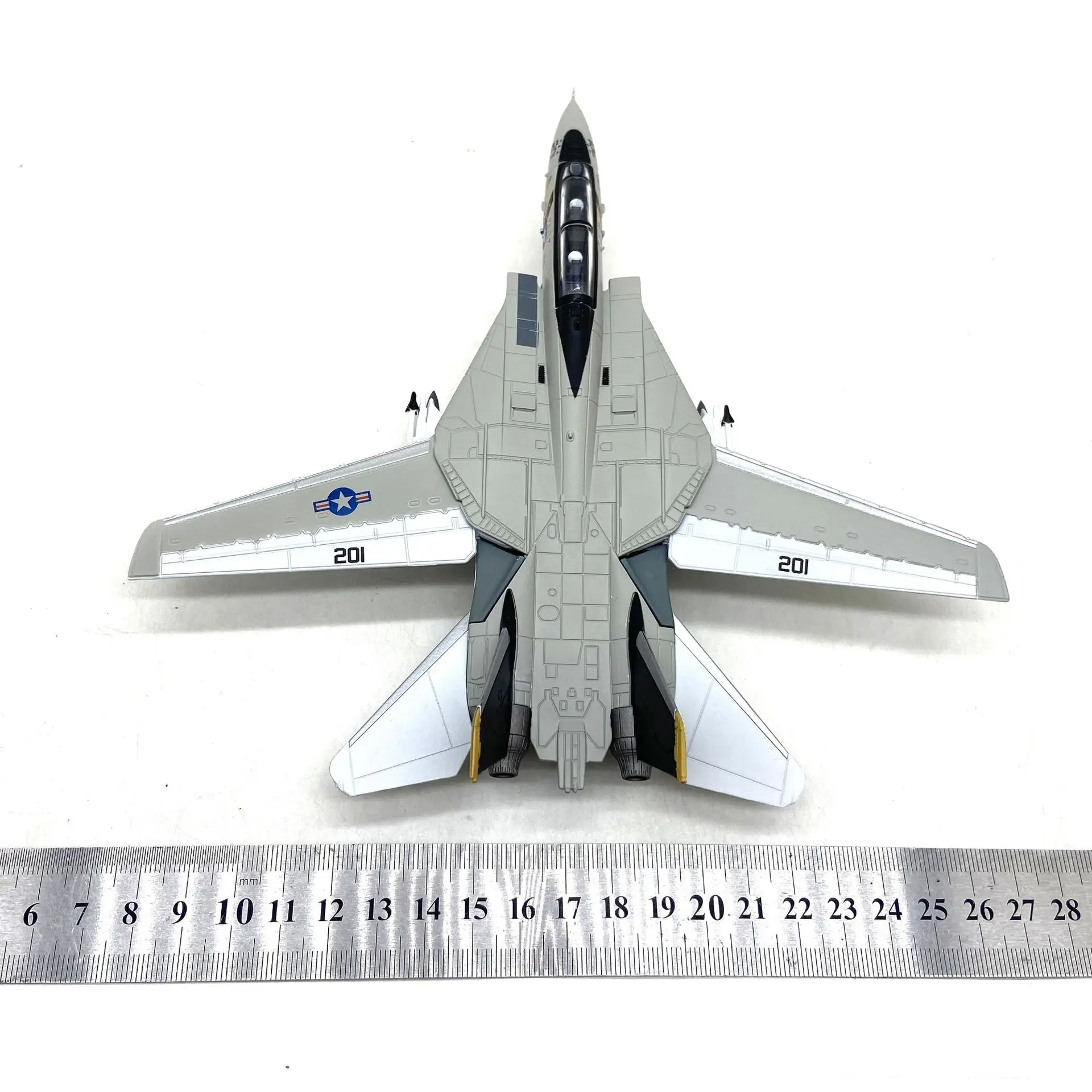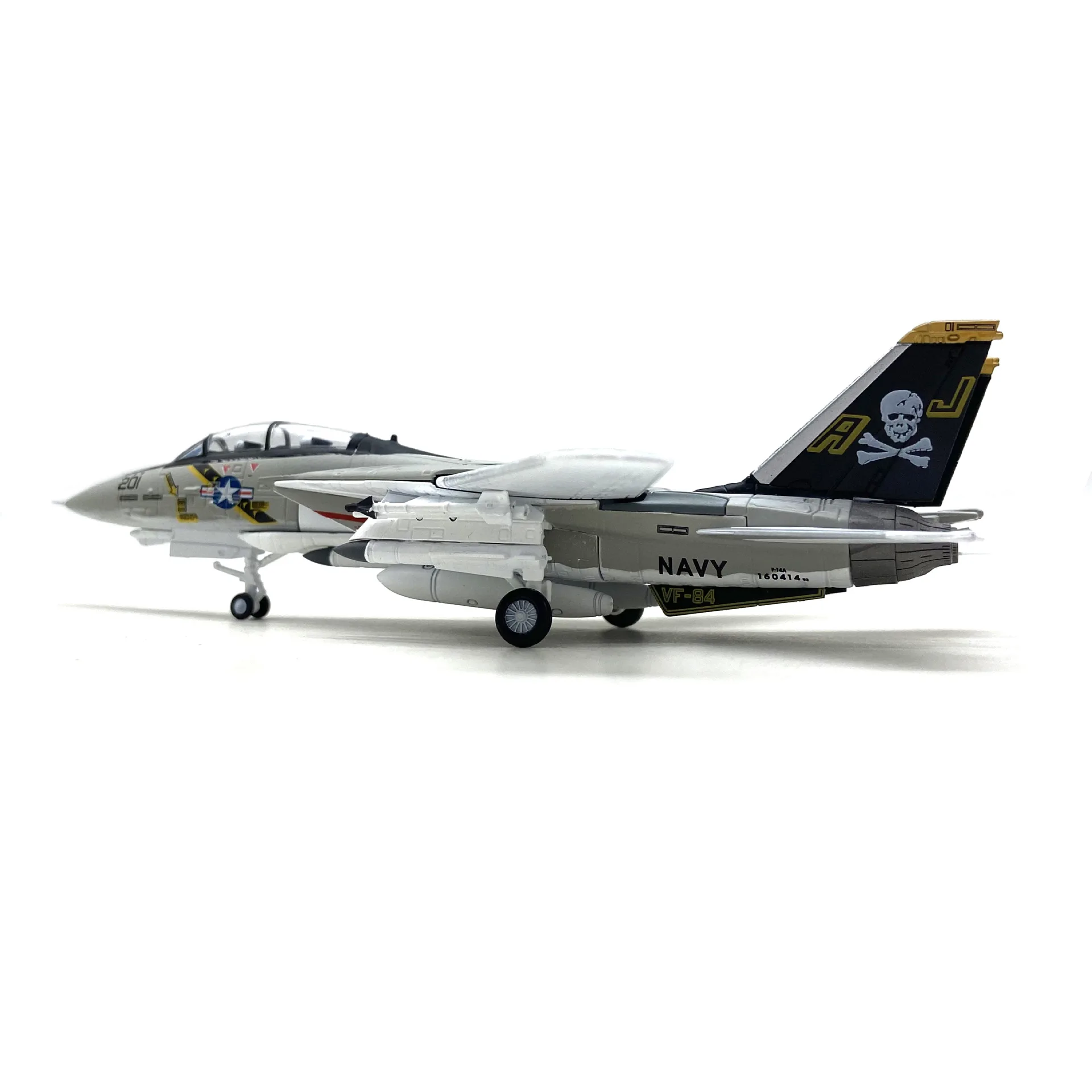 The 1/100 scale model of the F-14A Tomcat fighter jet is a stunning collectible, featuring a predominantly gray body with intricate detailing and foldable wings that are displayed in an open position. Crafted from high-quality diecast alloy for the fighter shell, with plastic components for added realism, this model highlights bold tail markings, including a skull emblem and a yellow stripe. Mounted on a sturdy black plastic stand for dynamic display, it perfectly showcases the fighter jet’s operational versatility. This meticulously detailed model is ideal for aviation enthusiasts and military collectors, promising to be a captivating addition to any collection.