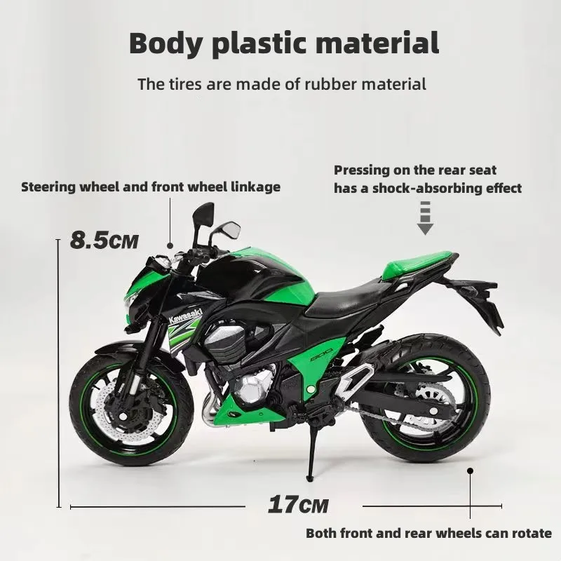 Immerse yourself in the detailed realism of this 1/12 Kawasaki Ninja Z800 racing cross-country motorcycle model, crafted from durable diecast metal and high-quality plastic. Perfect for collectors and enthusiasts, this meticulously designed replica captures the dynamic essence of the full-sized motorcycle, making it an eye-catching display piece or a thoughtful gift. Its precise scale and refined finish showcase expert craftsmanship, allowing you to enjoy the thrill of motocross fashion in miniature form. Whether you’re adding to your collection or seeking a standout decorative item, this Kawasaki Ninja Z800 model offers authenticity and excitement in a compact, beautifully crafted package.