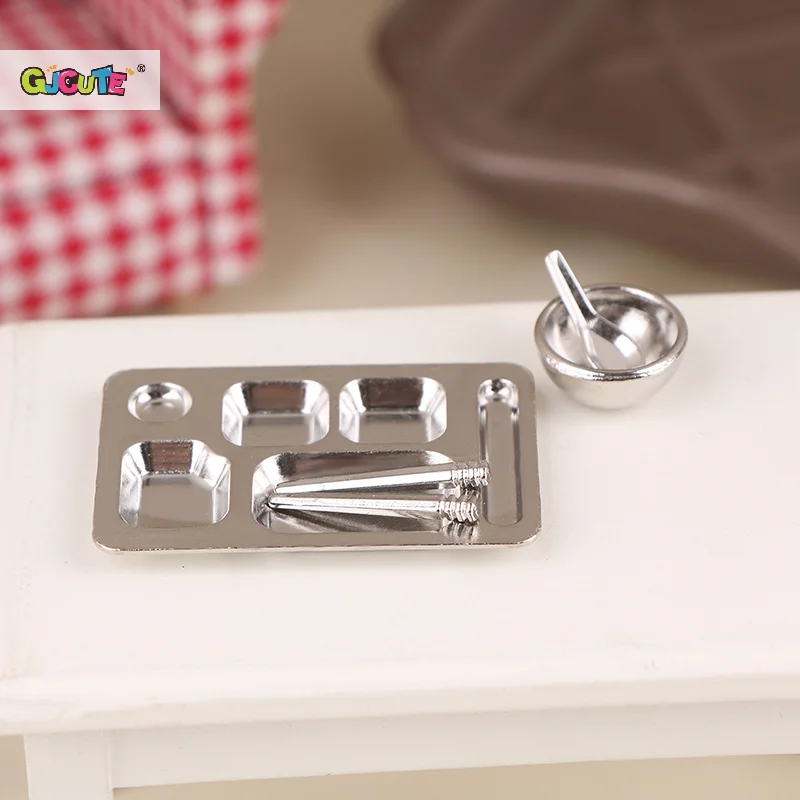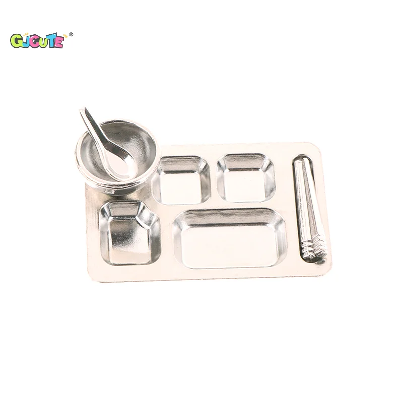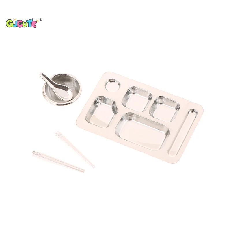 - Includes a dinner plate, bowl, spoon, and chopsticks, all made of alloy with a polished, shiny metallic surface for a realistic look in miniature form.