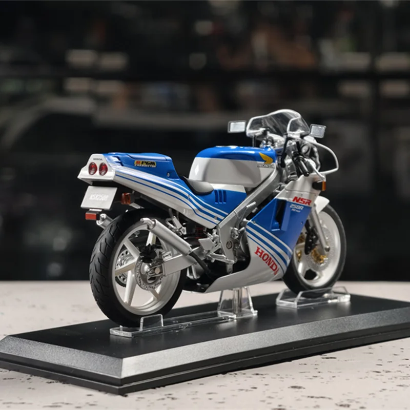 Imagine adding this exquisite replica of the Honda NSR 250R SP R4 Rothmans to your collection. Crafted with meticulous attention to detail, this 1/12 scale diecast model features vibrant liveries in white, blue, red, and yellow, accented with gold and black elements. The alloy construction enhances durability and authenticity, capturing the sleek aerodynamic design and bold graphics of the original motorcycle. Each model boasts fine painted details, including visible engine components, exhausts, suspension, and clear windshields, highlighting superb craftsmanship. Perfect as a display piece or collector’s item, it brings racing history to life in your space. This model’s striking aesthetic and realistic details make it an impressive addition for those who appreciate precision and style.