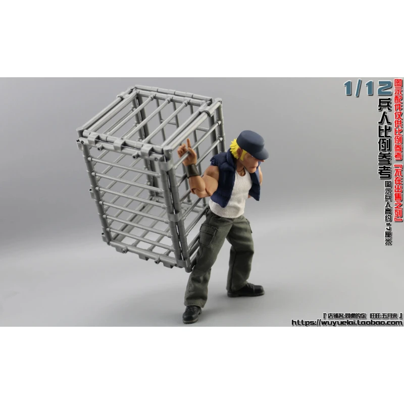 Enhance your action figure diorama with this meticulously crafted 1/12 scale prison cage model accessory, designed for 6-inch soldier figures. Available in two sizes—option A dimensions are 9 cm x 5.5 cm x 7.5 cm, while option B measures 11 cm x 8 cm x 8 cm—this cage is made from durable PVC and features a realistic design with closely arranged cylindrical bars. Its removable lid adds an interactive element, making it perfect for displaying your figures. Ideal for collectors, this finished good enhances storytelling and plays a vital role in your display setup.