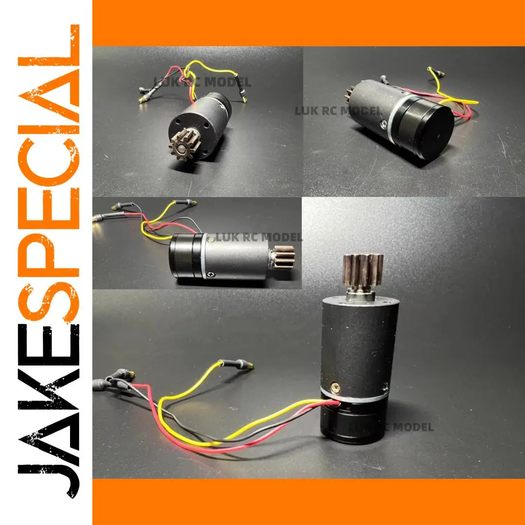 Step into the world of detailed model building with this high-quality brushless motor designed specifically for 1/14 scale hydraulic excavator models. Its sleek, cylindrical shape is finished in a matte black coating, giving it a modern and durable appearance that complements any detailed RC construction setup. The metallic sheen hints at the robust construction inside, while the colorful wires—red, yellow, and black—add a striking contrast to its otherwise monochrome design. This motor features a precision gear system, including a shiny, metallic three-stage gear and a finely toothed gear wheel, ensuring reliable power transmission. Whether you're repairing or customizing your excavator, this component seamlessly blends industrial craftsmanship with a clean, functional aesthetic.
