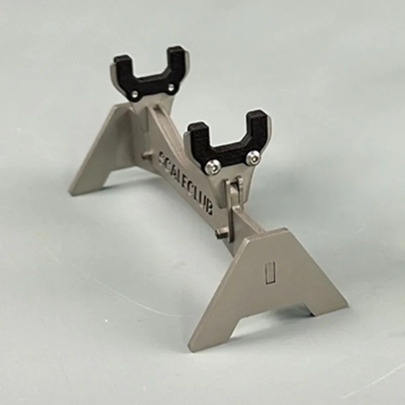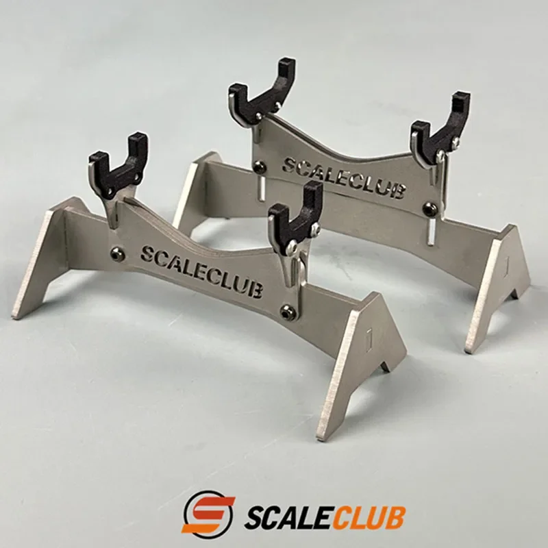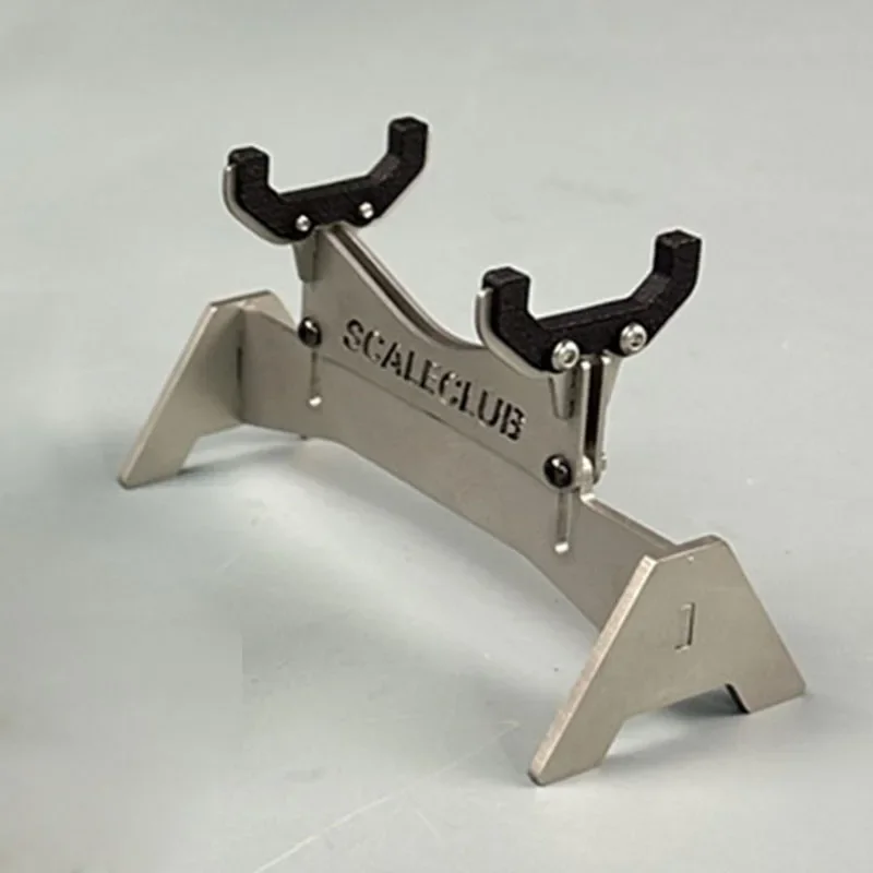 Elevate your RC truck collection with this durable metal display and maintenance stand designed for 1/14 scale models such as Tamiya SCANIA 770S R620, FH16XL 750, Benz Arocs, and MAN TGX series. Its sleek, industrial silver finish features a sturdy rectangular base with a subtly engraved brand name “SCALECLUB.” The black U-shaped upright arms with top hooks, connected by a fine metal wire, provide stable support for assembly, maintenance, and display of detailed truck models and dump trucks. Crafted for hobbyists aged 14 and above, this stand requires no electrical components, batteries, or power sources, offering a reliable, stylish solution for showcasing high-quality RC vehicles.