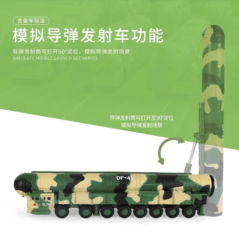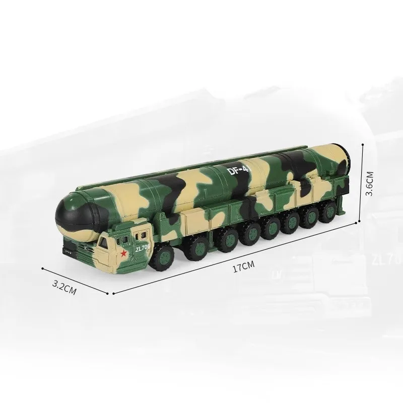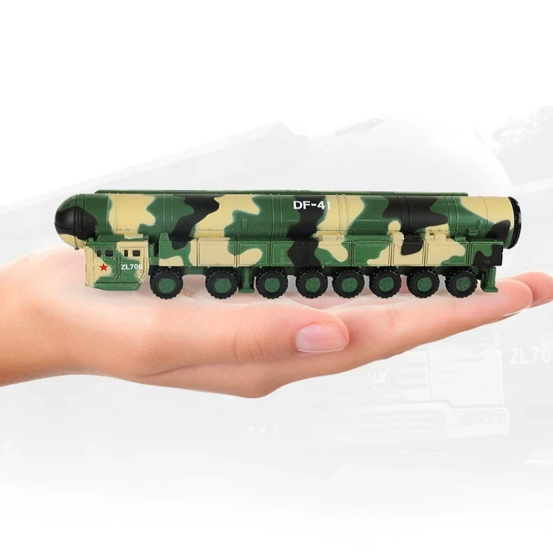 - Details include realistic wheels and suspension, a large cylindrical missile with a rounded nose cone, and accurate markings like “DF-41” and “ZL706” for authenticity.