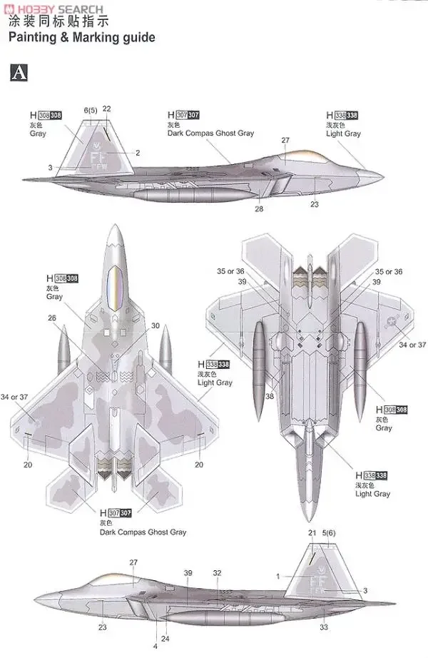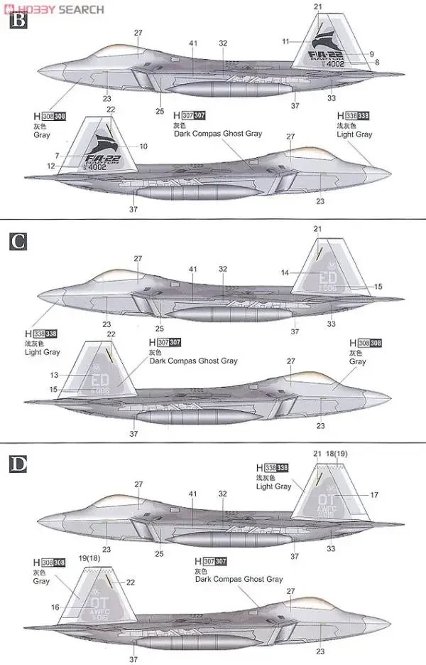 - Detailed 1/144 scale kit accurately representing the F-22 Raptor with realistic markings and design features.