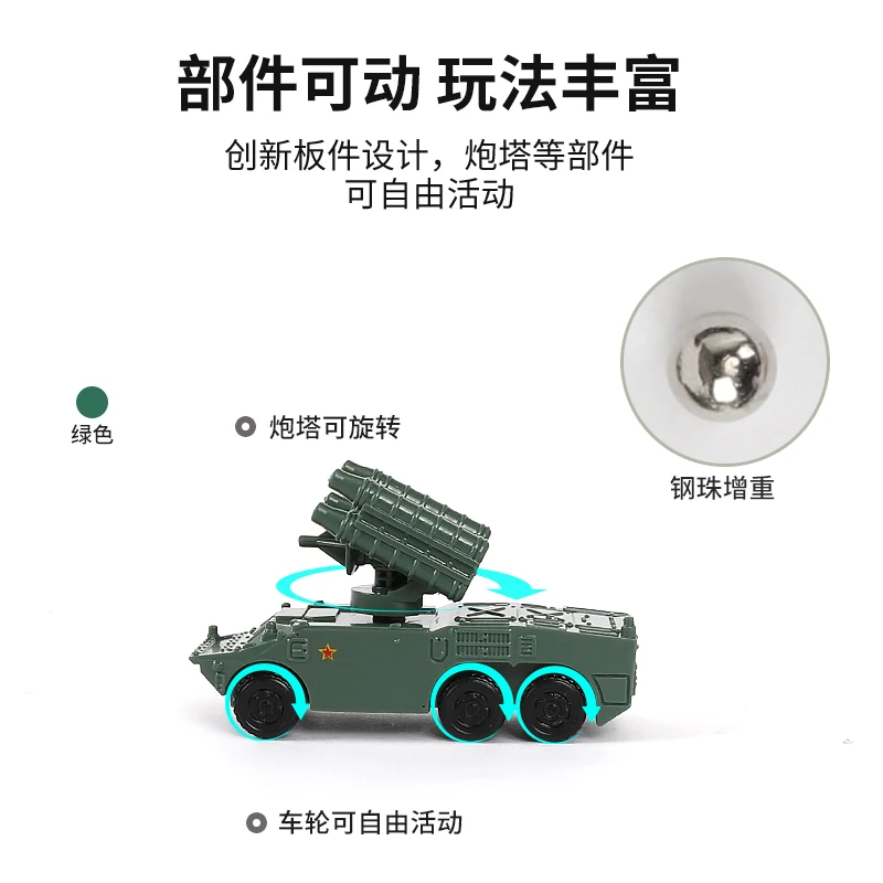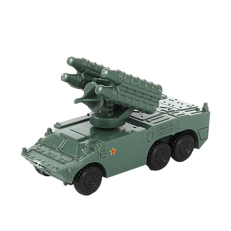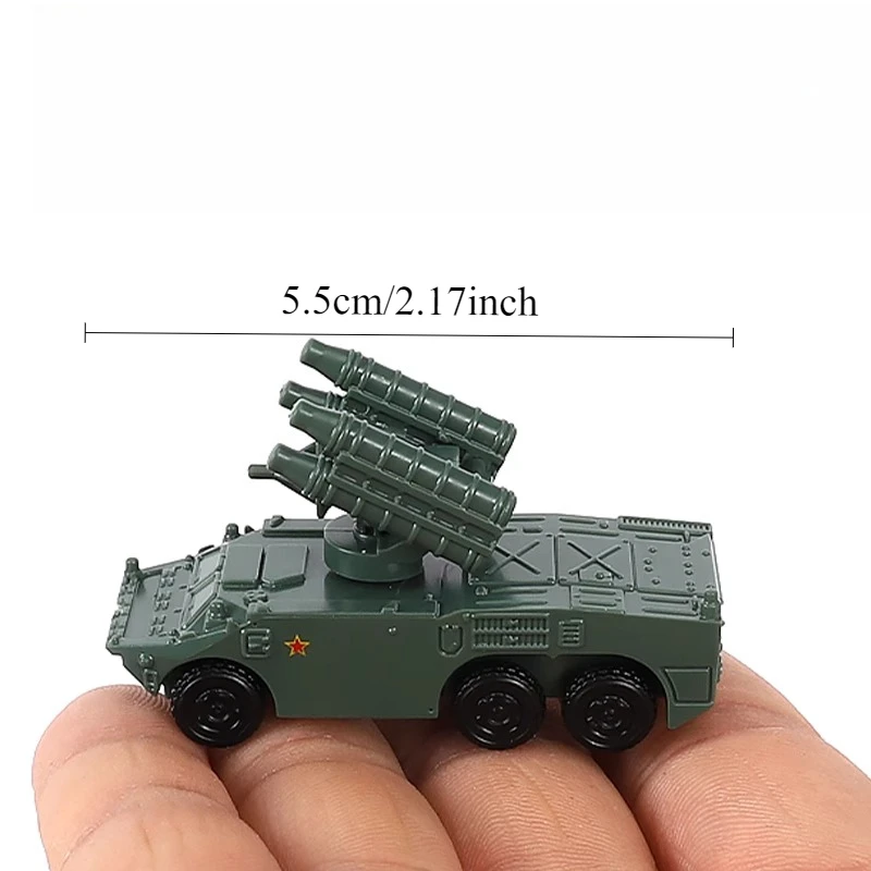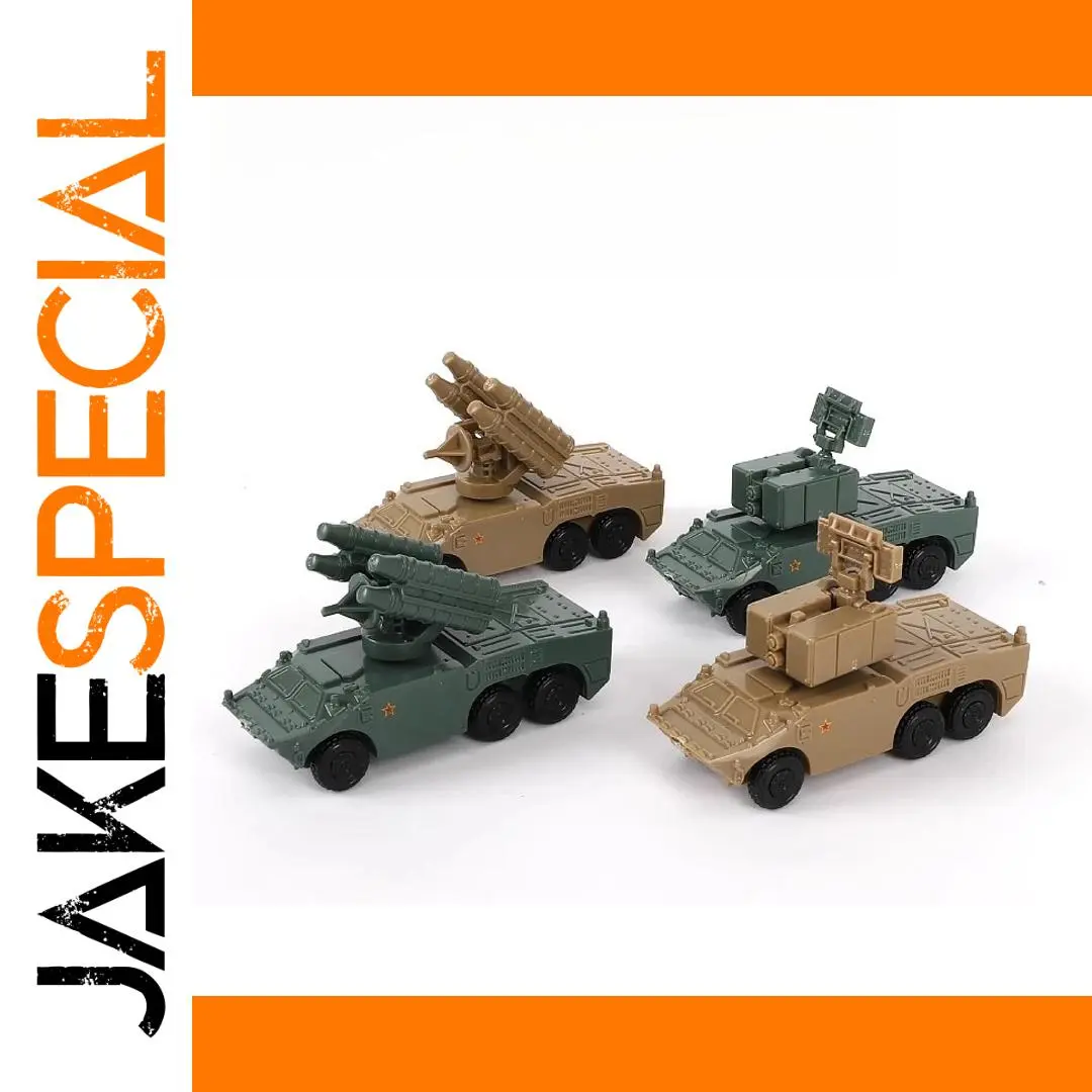 This highly detailed 1/144 scale model set features four plastic replicas of the Hongqi 7B air defense missile launcher radar vehicle, designed for collectors and enthusiasts. The models showcase a utilitarian military aesthetic with a sturdy, industrial look, featuring angular chassis, matte surfaces in deep green and sandy tan hues, and realistic paneling and vents. Equipped with rotatable radar and missile launcher components, these replicas emphasize authenticity and functional detail. Suitable for ages 14 and above, the set is CE certified, ideal for display or slide play, offering a realistic portrayal of military missile launcher technology in a compact, collectible form.