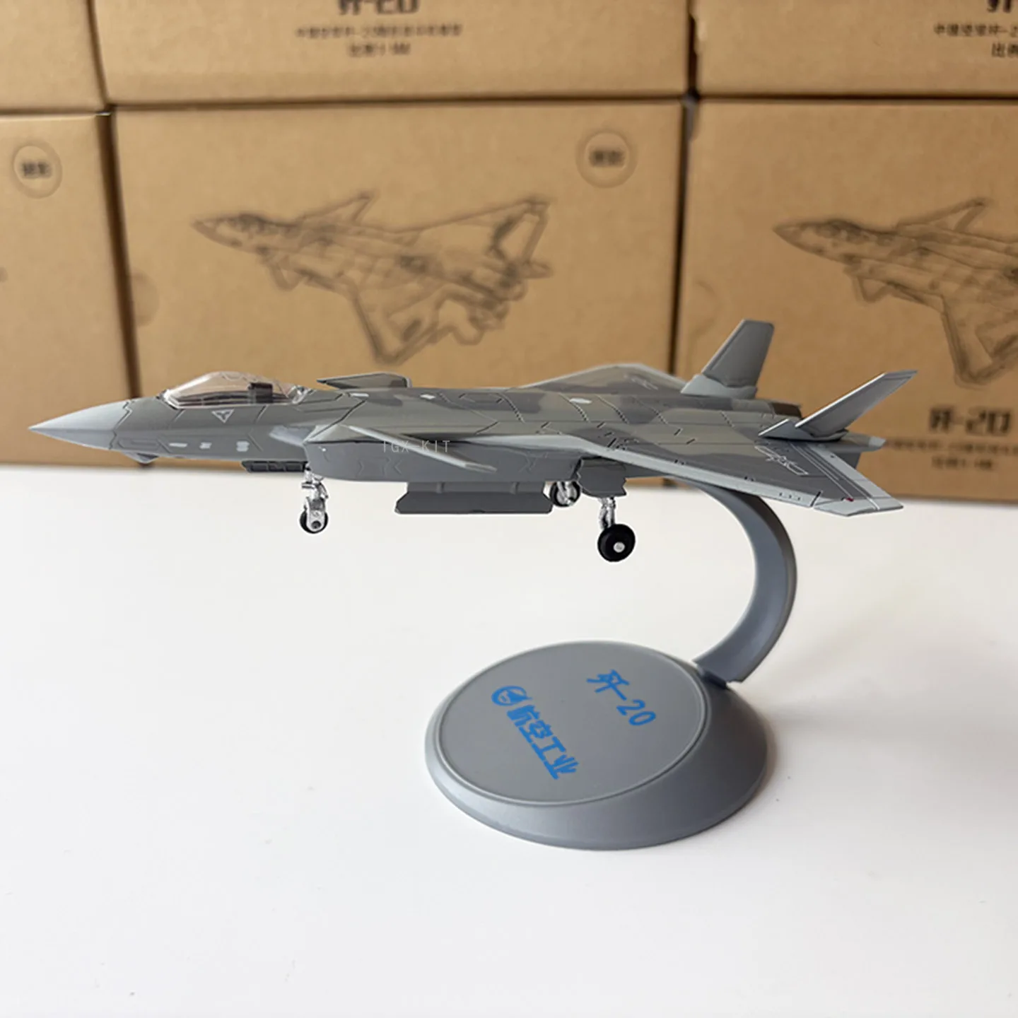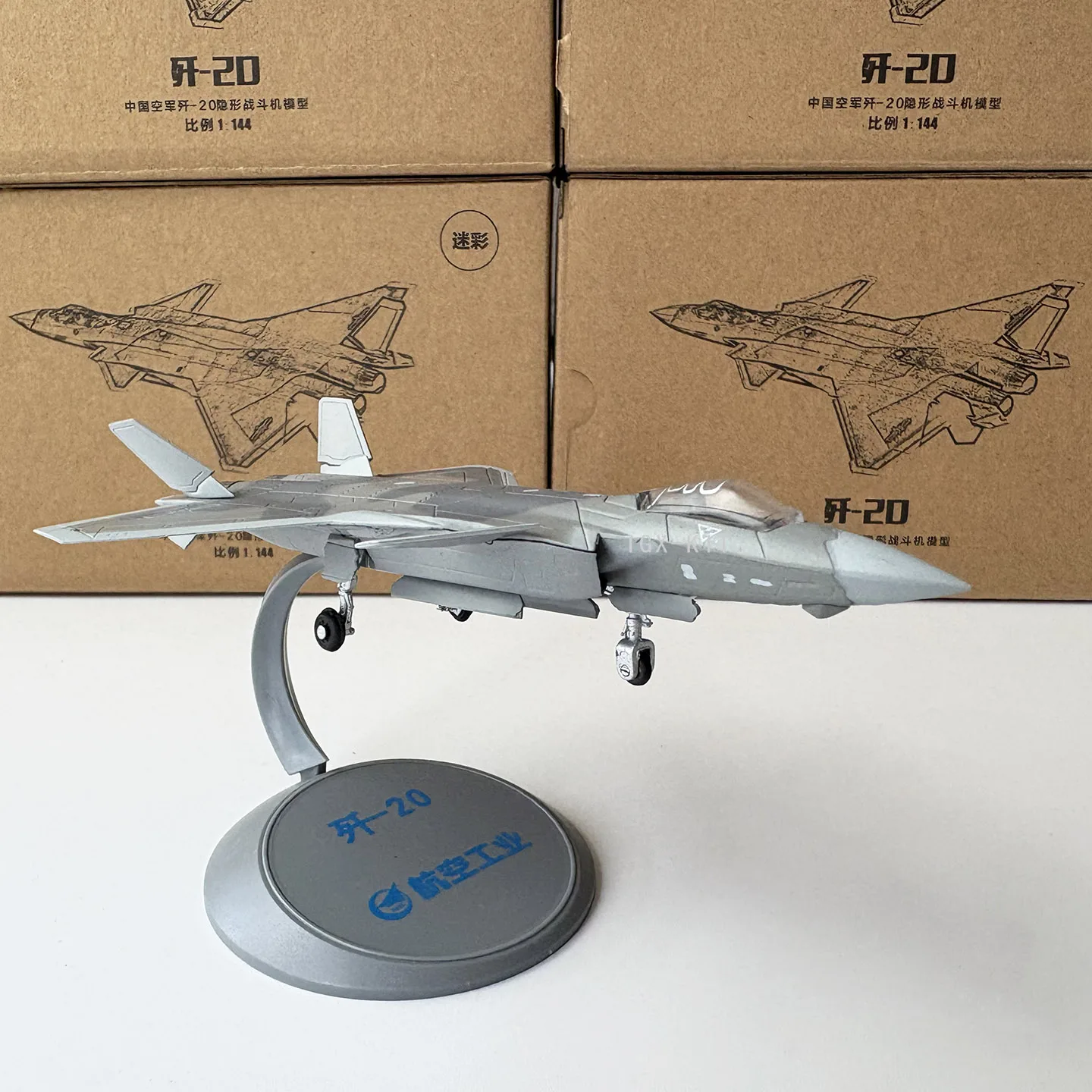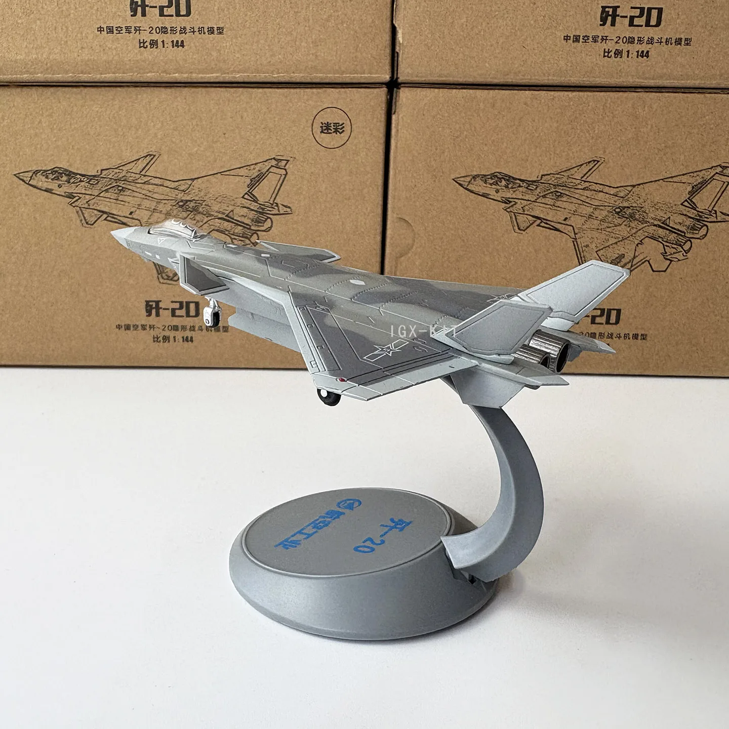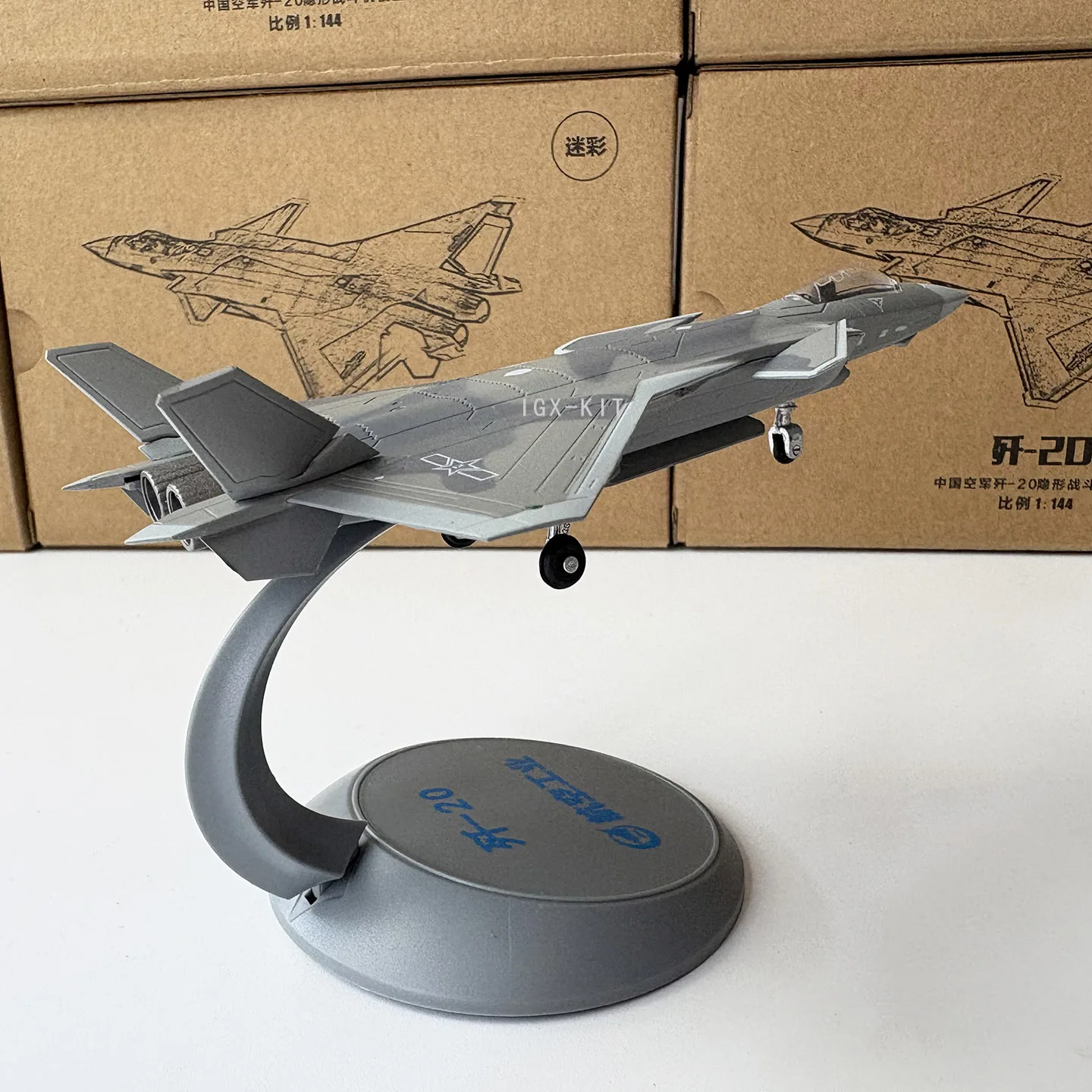 Bring home this highly detailed 1:144 scale model of the fourth-generation J-20 stealth fighter, measuring 14.5 cm in length and 19.5 cm in width. Crafted from alloy and engineering plastics, this diecast static display features a sleek matte gray finish, sharply angled wings, outward-canted tail fins, intricate panel lines, and surface details that emphasize its modern, aerodynamic design. The transparent cockpit canopy reveals detailed interior elements, complemented by small white markings and black engine exhaust nozzles for added authenticity. Perfect for collectors 14 years and older, this model makes an impressive display piece or collectible gift, capturing the powerful essence of the J-20 fighter aircraft.
