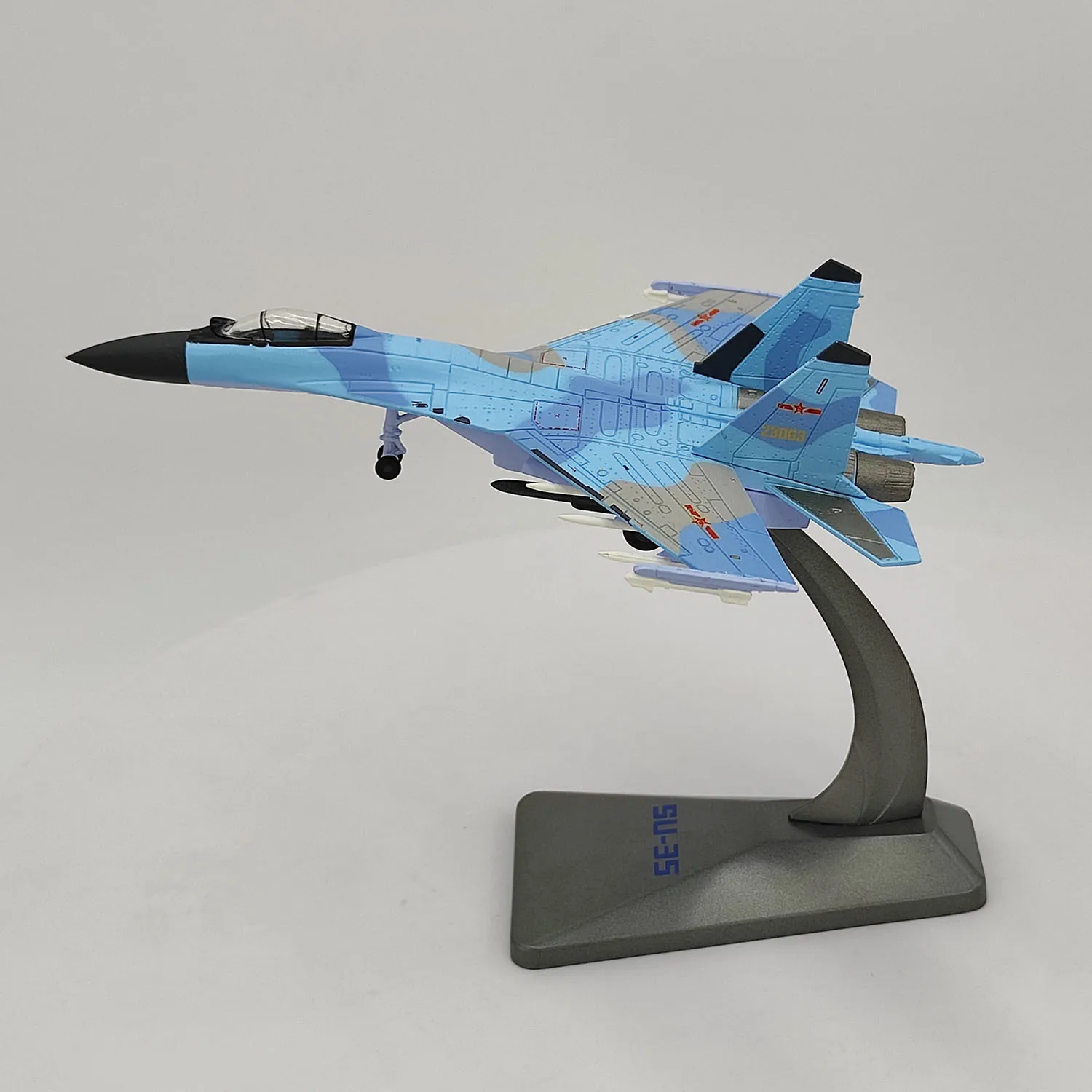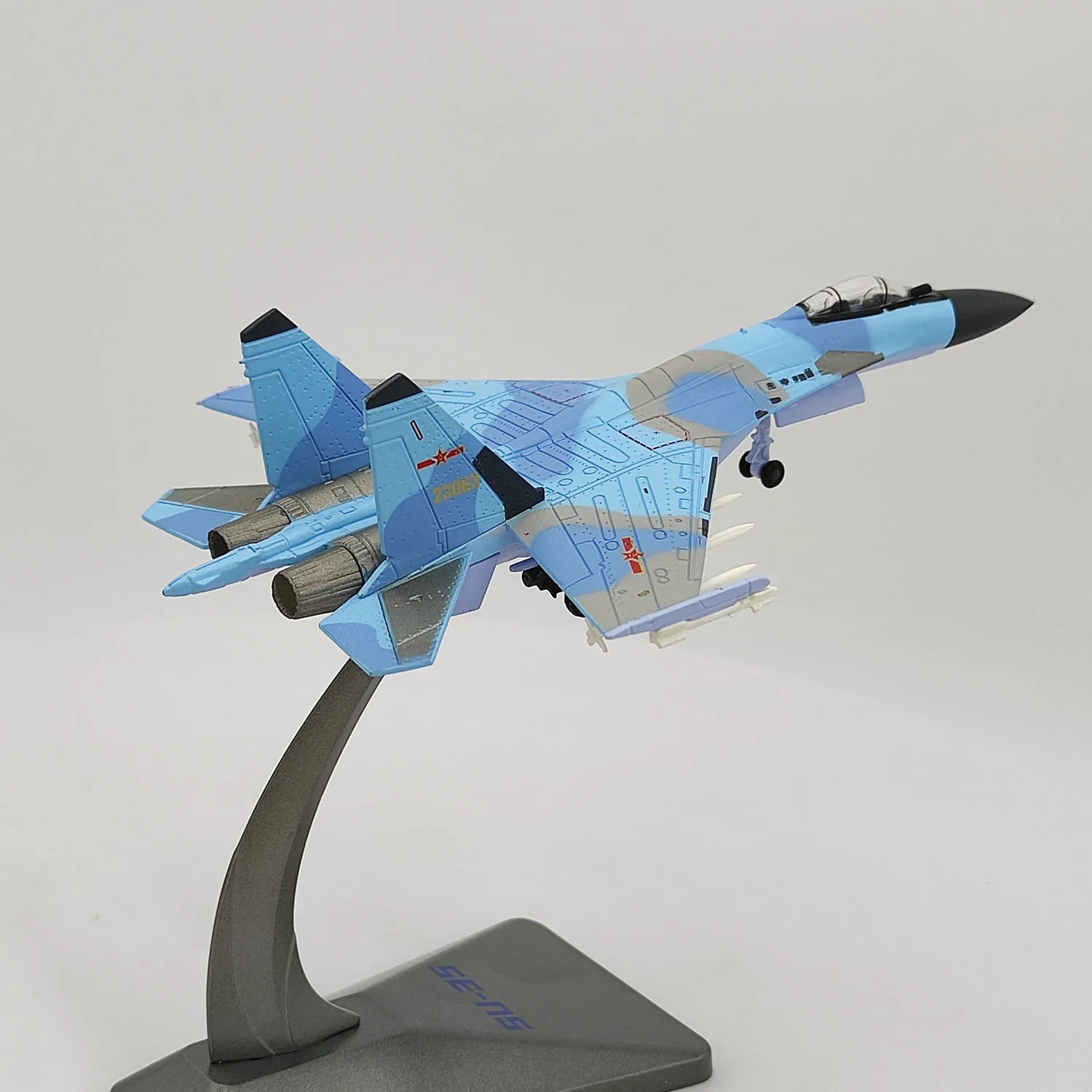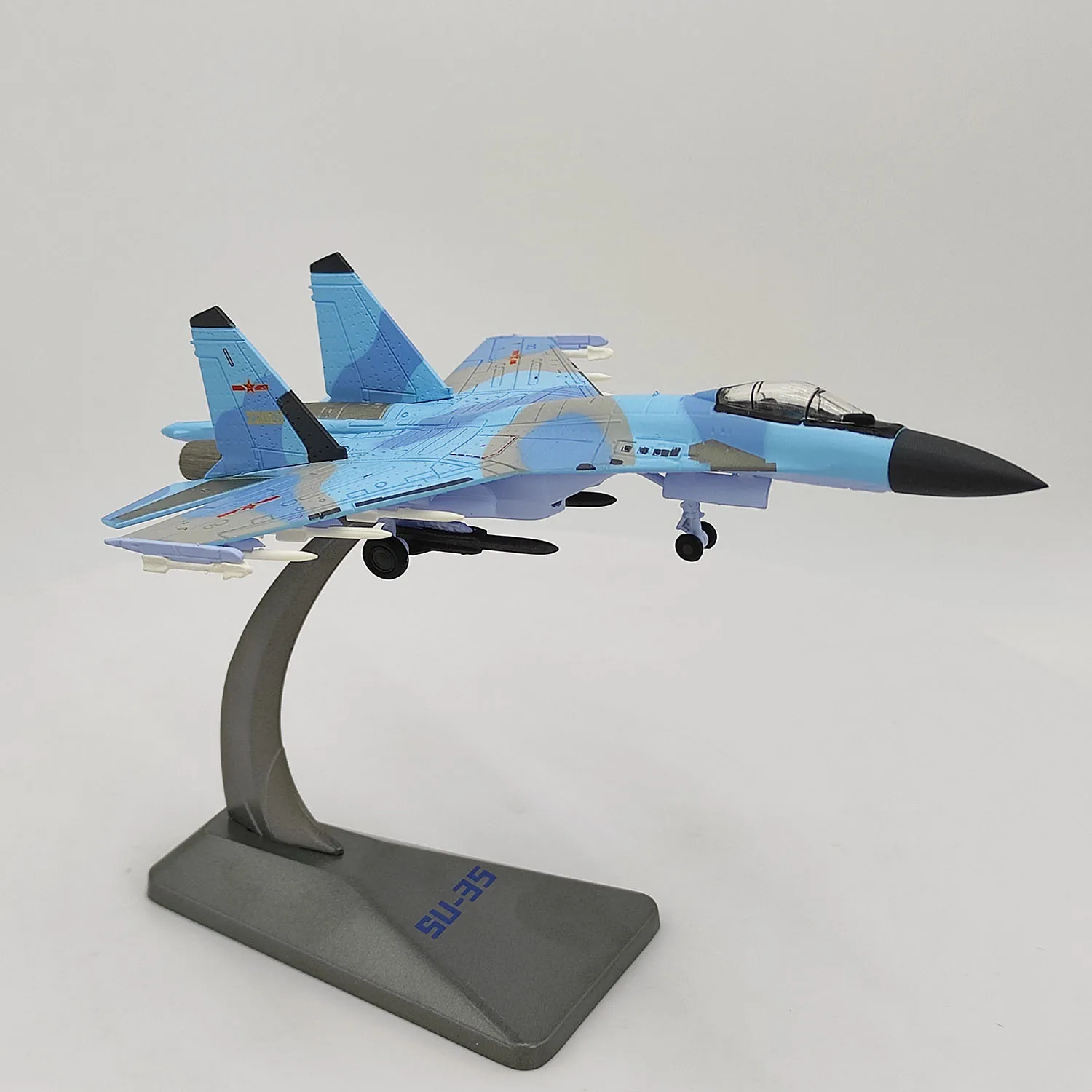The Diecast 1/144 Scale SU-35 Fighter Jet is a stunning collectible that showcases intricate detailing and a striking camouflage color scheme. With its light blue and dark blue accents, this model captures the essence of modern military aircraft. Set above a sleek gray display stand, it features a partially transparent cockpit, revealing a sophisticated interior. Artfully designed weapons are mounted under the wings, further enhancing its realistic look. Whether you imagine showcasing it on your desk or within a display case, this exquisite model is sure to impress fellow collectors and enthusiasts alike.