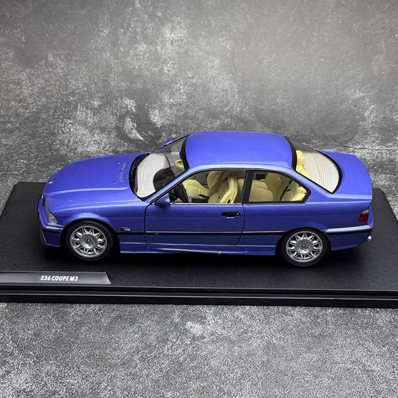 - Represents the 1990 BMW M3 E36 coupe in 1/18 scale, measuring about 24 cm in length, perfect for display and collection enthusiasts.