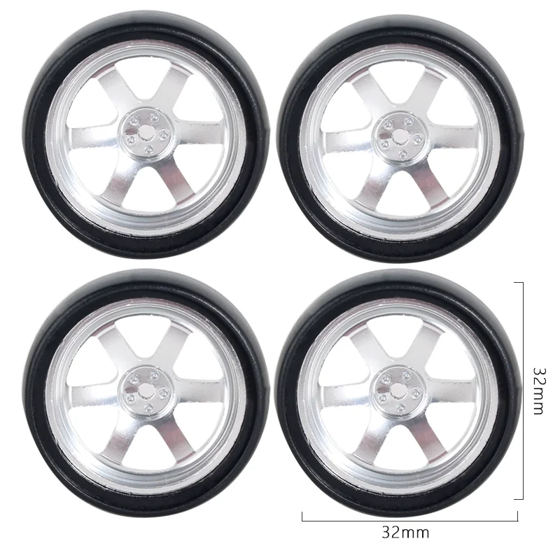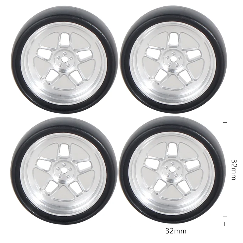 Experience high-performance at your fingertips with these premium four-piece RC drift tires. Crafted from durable metal and plastic, each tire measures 32mm by 32mm, offering a perfect fit for your 1/18 scale RC car. The aggressive square tread pattern ensures excellent grip on drifting surfaces, while the metallic silver multi-spoke rims add a standout, realistic look. Designed for enthusiasts who want both style and functionality, these tires improve your vehicle’s handling and appearance effortlessly. Suitable for upgraded RC models, they are easy to install, durable for prolonged use, and enhance the overall racing experience. With a sleek, high-end aesthetic, they'll elevate your car’s sporty look and performance instantly.