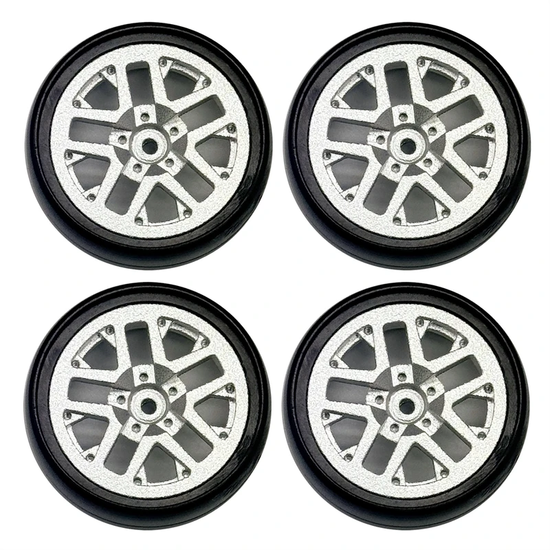 - The metallic silver multi-spoke rims feature intricate radiating spoke designs that mimic real car wheels, adding a touch of sophistication and realism.
