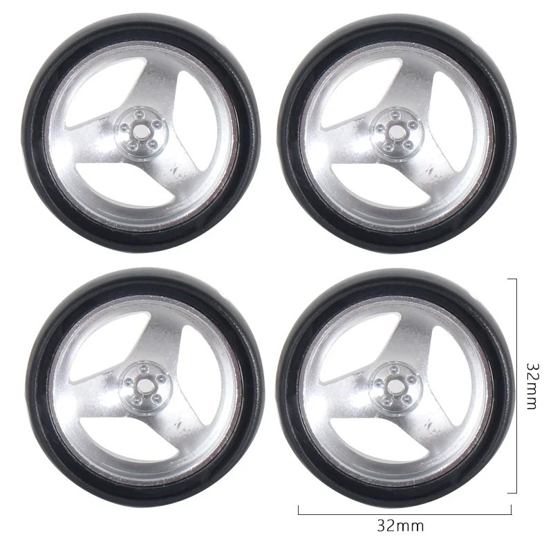 - Four durable metal and plastic tires, measuring 32mm x 32mm each, ideal for 1/18 scale RC cars for enhanced handling and performance.
