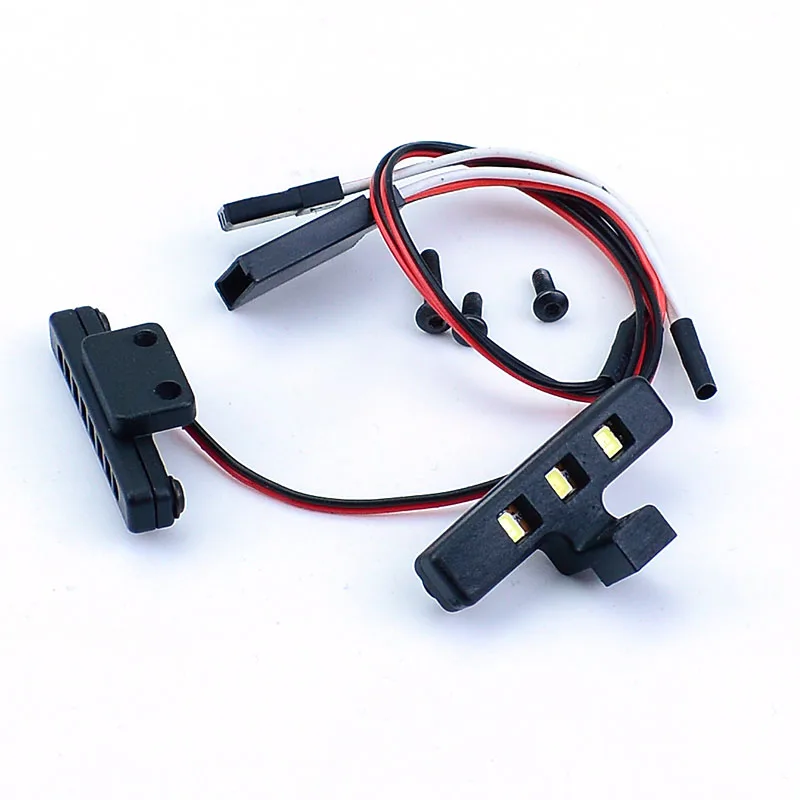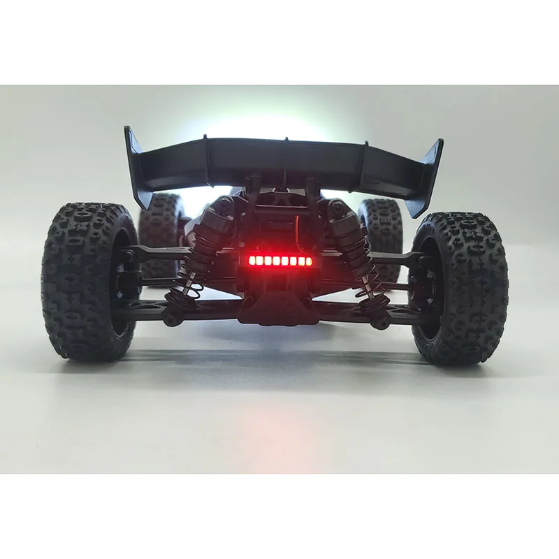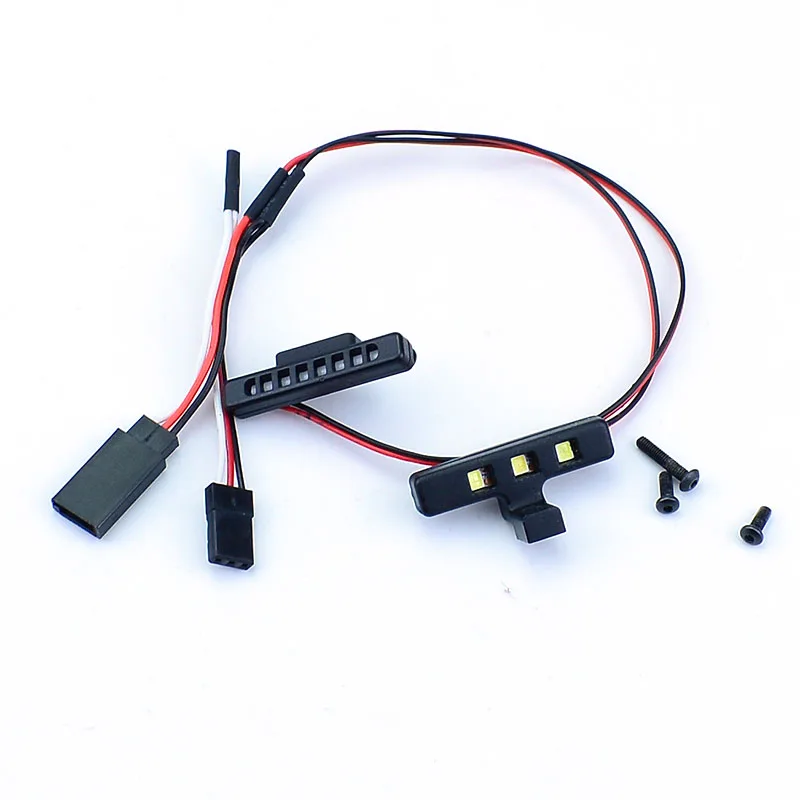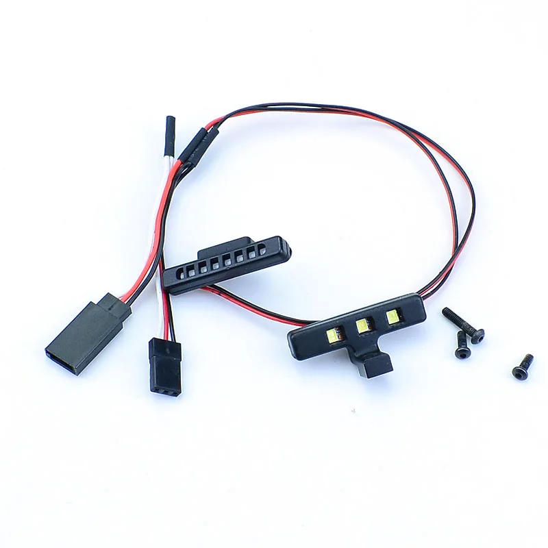 Enhance your 1/18 scale RC vehicle’s realism with this durable 5V LED front and rear lighting system, specifically designed for the TYPHON GROM MEGA 380 Brushed 4×4 buggy. Featuring three high-brightness white LED headlights and a bright red LED rear light bar, it offers an authentic off-road appearance. The sleek black wiring harness, accented with a nylon grille for protection, includes mounting screws and cable ties for easy wiring management. Connecting seamlessly to the original cooling fan interface, it requires removal of the shock absorber for installation. Crafted from tough composite material, this upgrade adds a modern, utilitarian look, elevating your RC vehicle’s aesthetic and functionality.