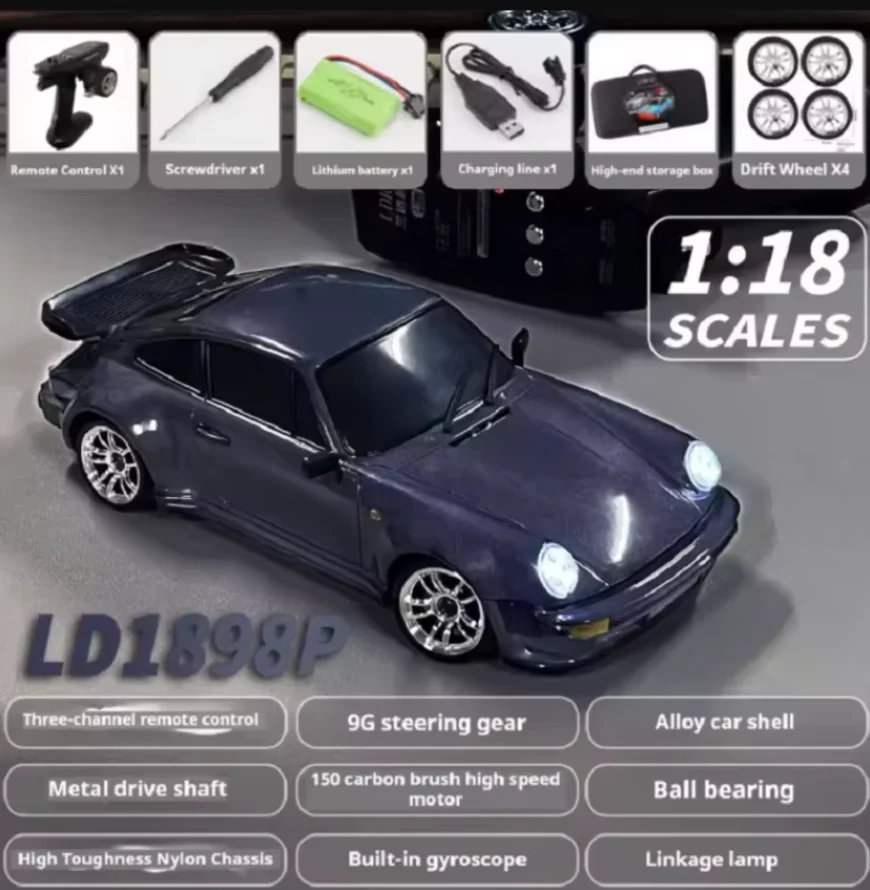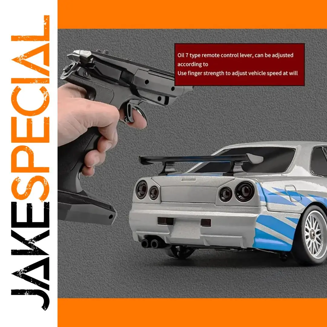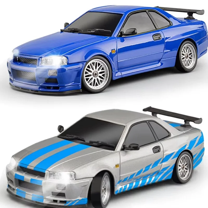 Experience the thrill of high-performance drifting with this 1/18 scale remote control GTR drift car, featuring rear-wheel drive and a sleek design in vibrant colors like purple, blue, and silver. Measuring 23x11x10 cm, it boasts a durable construction from metal, plastic, rubber, and PVC. Powered by a 7.4V, 500mAh rechargeable battery, it offers 20-30 minutes of dynamic driving. The remote control, operating up to 50 meters with 4 channels and LED light features, provides precise handling with a stylish, modern look. Ready-to-use out of the box, this RC car includes a USB charging cable, batteries, and instructions, backed by a 30-day warranty for peace of mind.