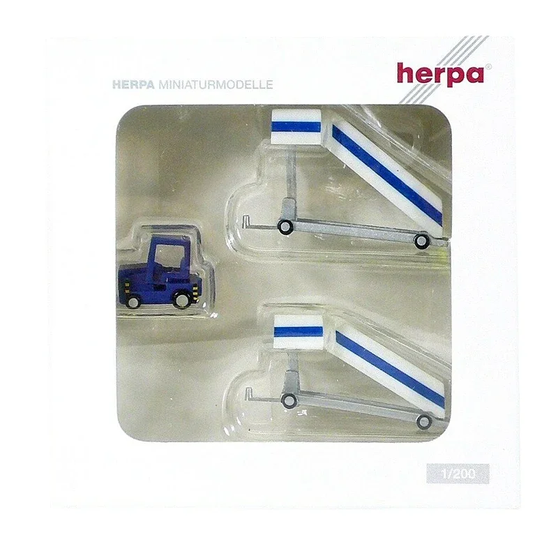 Experience the charm and detail of this 1/200 scale diecast model of a passenger ladder, measuring approximately 10 cm in length. Crafted from durable metal, this collectible ornament captures the essence of airport ground operations with stunning realism. The sleek silver finish, accented by blue and white detailing, makes it an eye-catching piece for any aviation enthusiast. Alongside the ladder, a compact blue ground vehicle adds an extra layer of authenticity to the display. This model is expertly designed with turning wheels for an engaging interactive experience, making it a wonderful addition to your collection or a thoughtful gift for fellow collectors.
