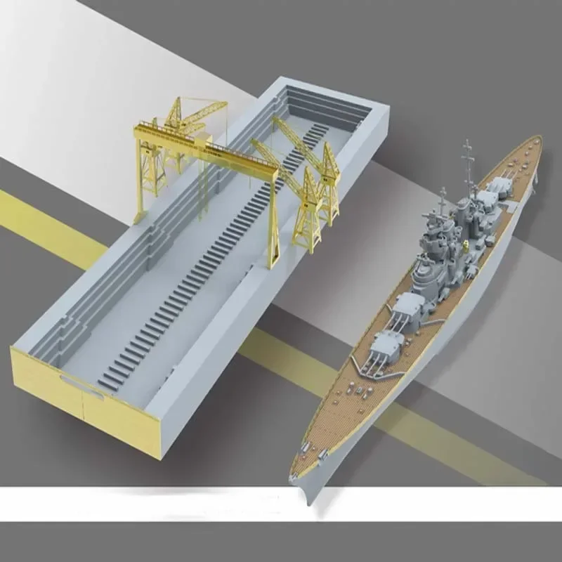 Imagine adding a remarkable piece of maritime history to your collection—this detailed assembled model of the Grosser Kurfürst (H42) battleship, accompanied by a realistic dry dock set, brings the grandeur of naval engineering right into your space. Crafted from durable PVC plastic, the model features meticulous attention to detail, including textured decking in warm tan tones, sleek elongated hull, and intricate superstructures. The surrounding lattice-style cranes, painted bright yellow, contrast beautifully against the ship’s subdued hues, creating a vibrant industrial scene. Sized for display, the finished model measures precisely as shown in the product images, making it an ideal gift or decorative piece for hobbyists and collectors. Elevate your collection today with this impressive maritime replica.