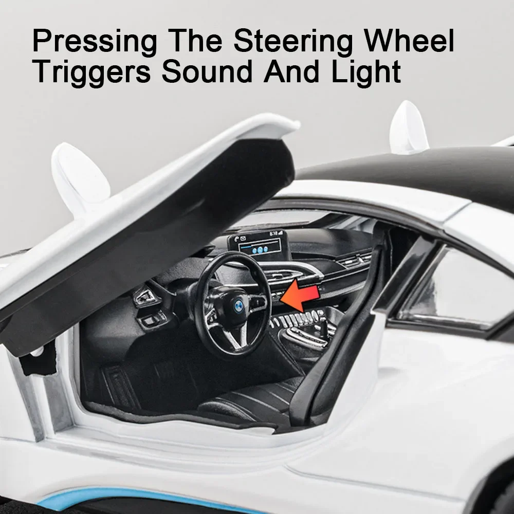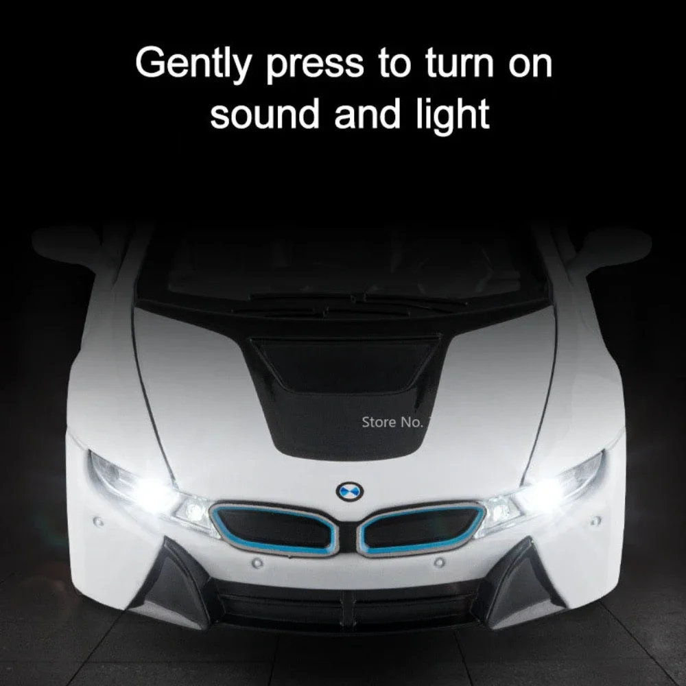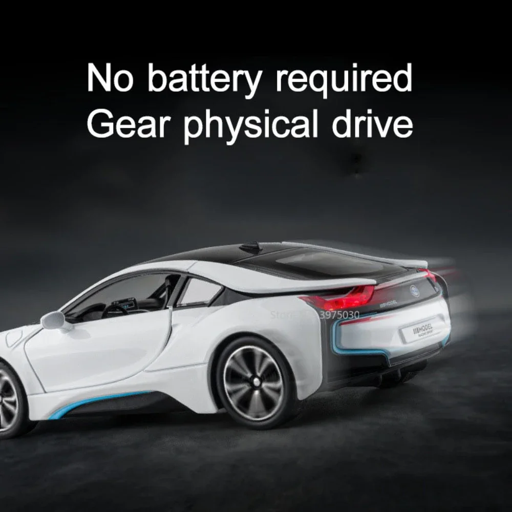 - Realistic 1/22 scale design with precise details, capturing the sleek appearance of the iconic I8 supercar in a compact size.
