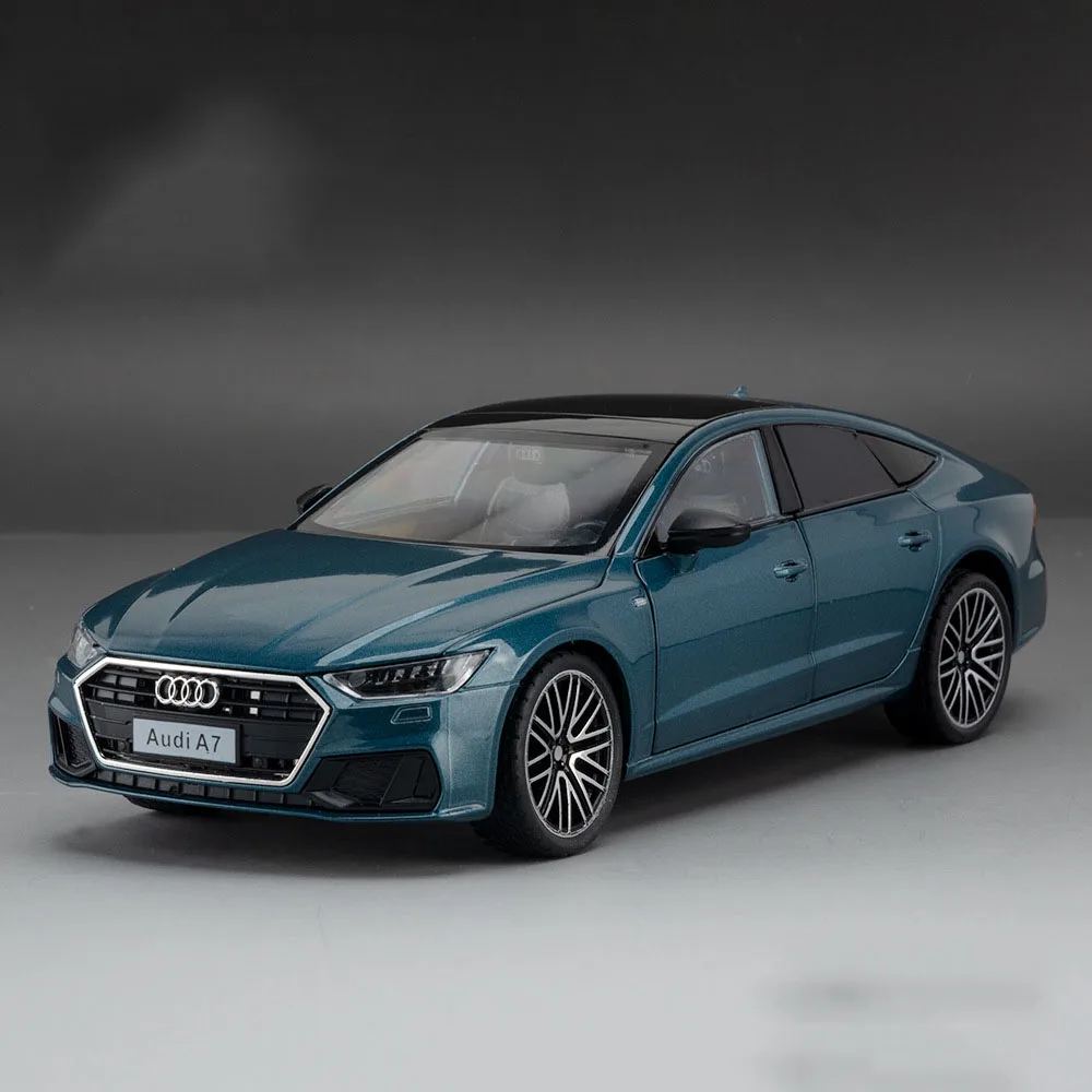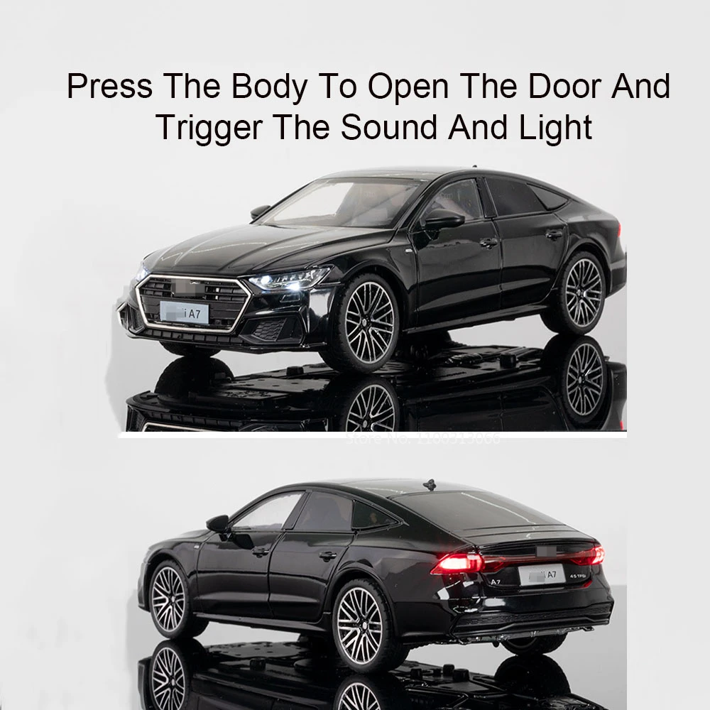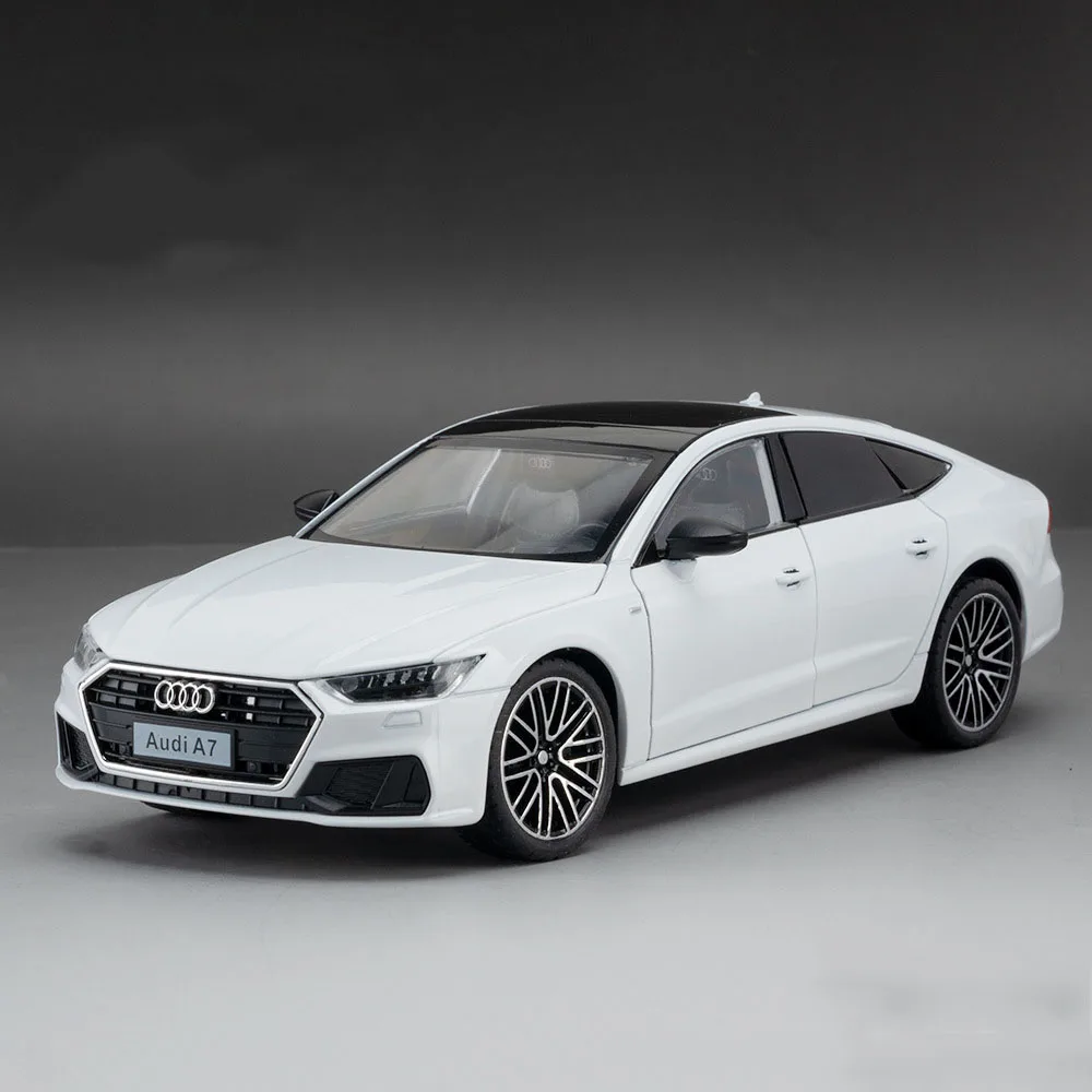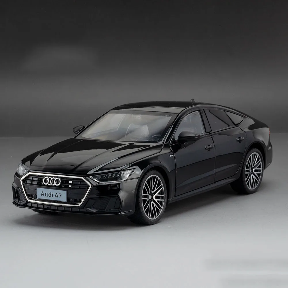 Experience the thrill of the 1/24 A7 Alloy Model Car, featuring pull back action, vibrant lights, and realistic sounds for endless fun.