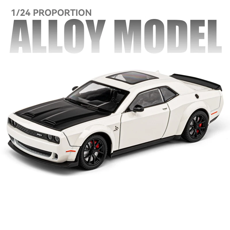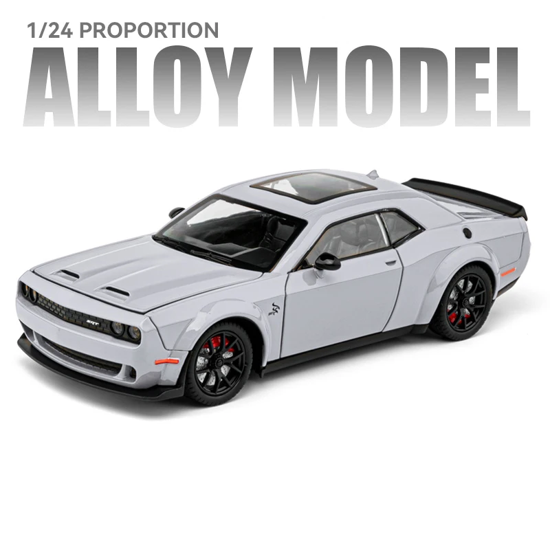 Imagine showcasing this stunning 1/24 scale die-cast alloy Hellcat sports car model in your collection; its sleek design, glossy black finish, and detailed features create an eye-catching display. Crafted from durable metal, this model offers a realistic representation of the high-performance muscle car, complete with simulation sound and light effects that bring it to life. Whether you're a passionate collector or searching for a unique gift, this model’s aggressive stance, sporty accents, and gold detailing will impress and inspire. Its vibrant options—boxed black, gray, white, and red—allow you to choose your favorite. Enjoy the thrill of owning a precision-crafted, safe, and visually captivating model that elevates your collection with style and authenticity.