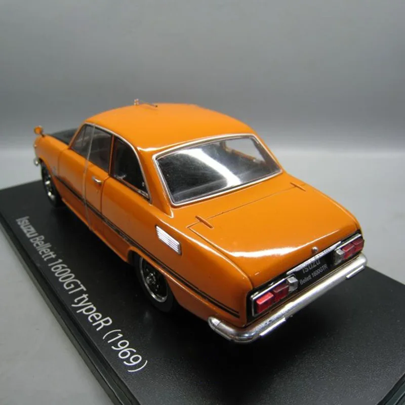 Experience the timeless charm of the vintage Isuzu BELLETT 1600GT with this highly detailed 1/24 scale diecast alloy model. Crafted from durable alloy and ABS, this collectible captures the sleek, classic coupe design with vibrant orange paint contrasted by black accents on the hood, roof, and front bumper. Its realistic features include detailed chrome grille, bumper, and door handles, transparent plastic windows revealing an interior, and subtle vents on the hood. The fixed front wheels and meticulously crafted silver rims add to its authentic appearance. Designed purely as a decorative piece, this model offers a captivating display for enthusiasts who appreciate craftsmanship, vintage style, and attention to detail in collectible collectibles.