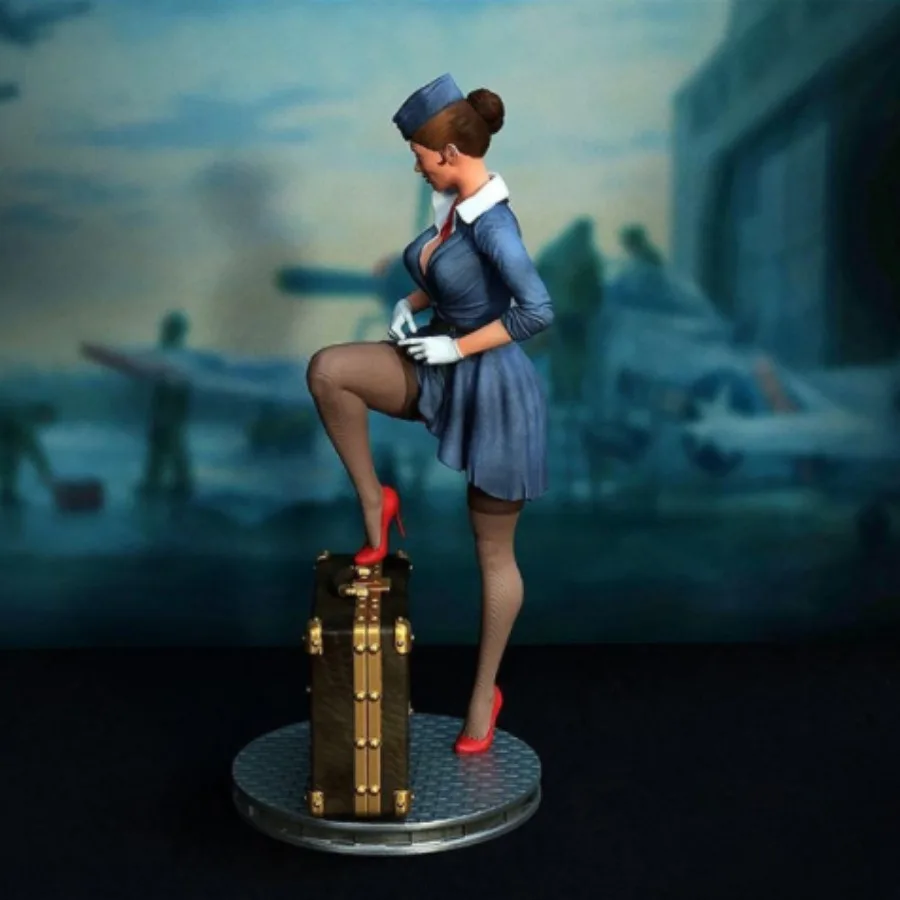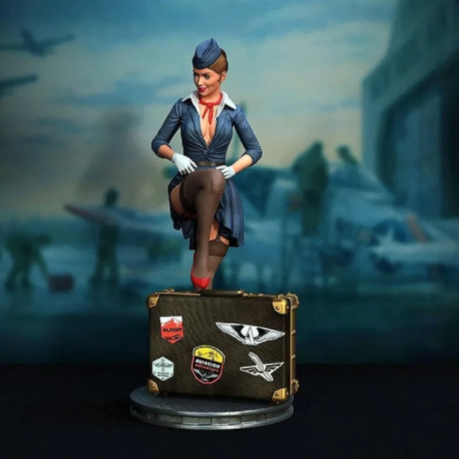 Immerse yourself in the world of miniature collectibles with this highly detailed 1/24 scale resin figure of a stewardess pin-up. Designed for hobby enthusiasts, this assembled model kit is perfect for creating unique dioramas and micro scenes. Crafted from environmentally friendly resin, the model offers impressive precision and intricate details, allowing you to bring your artistic visions to life. Remember, this figure arrives unassembled and unpainted, giving you the opportunity to personalize it with your own touch. Its delicate design makes it ideal for displays, collectors, and hobbyists looking for a challenge. The miniature’s high-quality resin and meticulous craftsmanship will add a charming, vintage allure to your collection. Perfect for fantasy & sci-fi themes or Diorama creation.