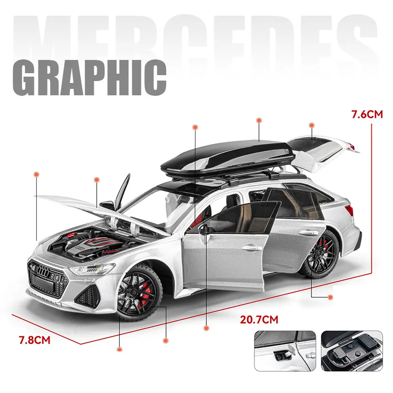 Step into the world of high-performance automobiles with this detailed miniature RS6 Quattro. Whether you're a dedicated collector or a passionate enthusiast, owning this model offers not only a stunning visual display but also an interactive experience. Its realistic features, durable construction, and accurate detailing are designed to impress and inspire. Imagine showcasing this impressive piece in your collection or using it as an educational tool to understand vehicle design. Don't miss the opportunity to own this exceptional miniature, perfect for display, gifting, or personal admiration. Add this model to your cart today and elevate your automotive collection!