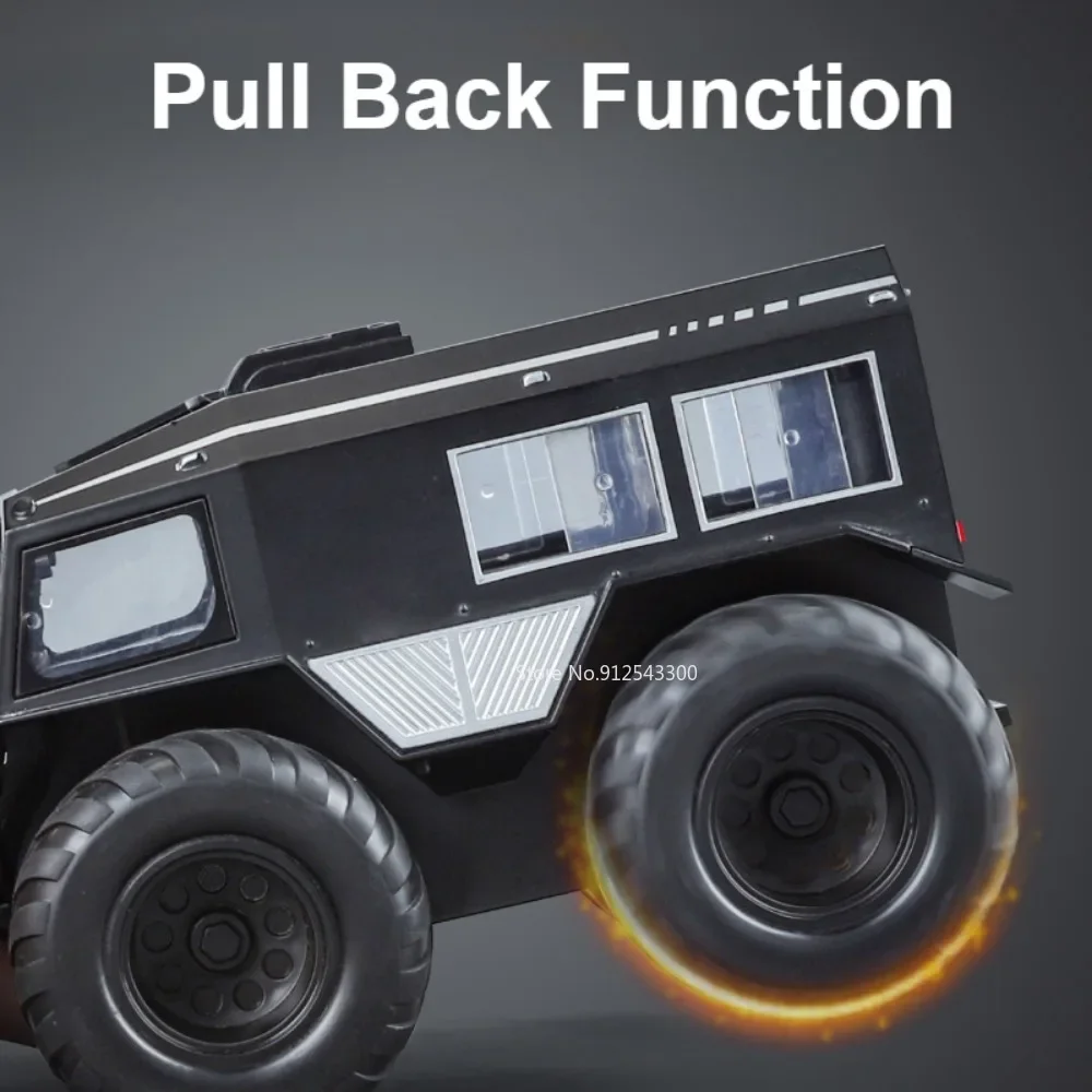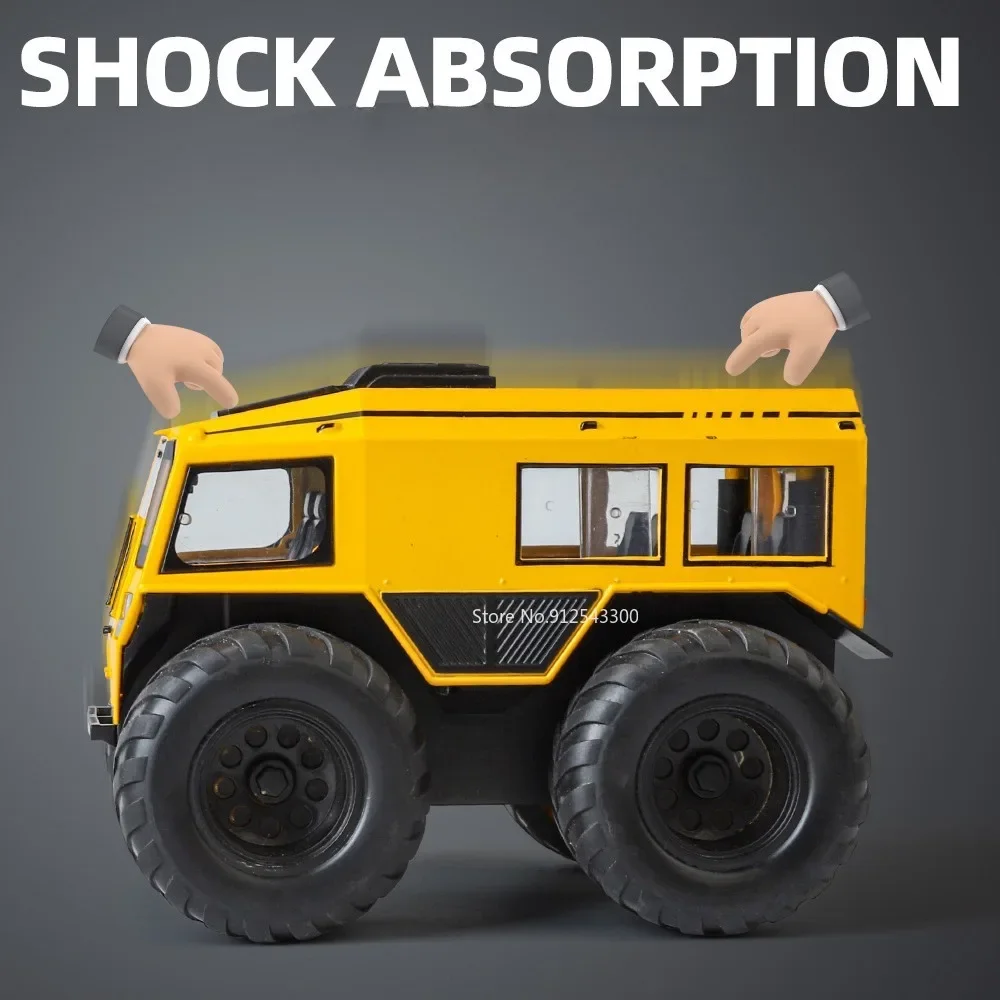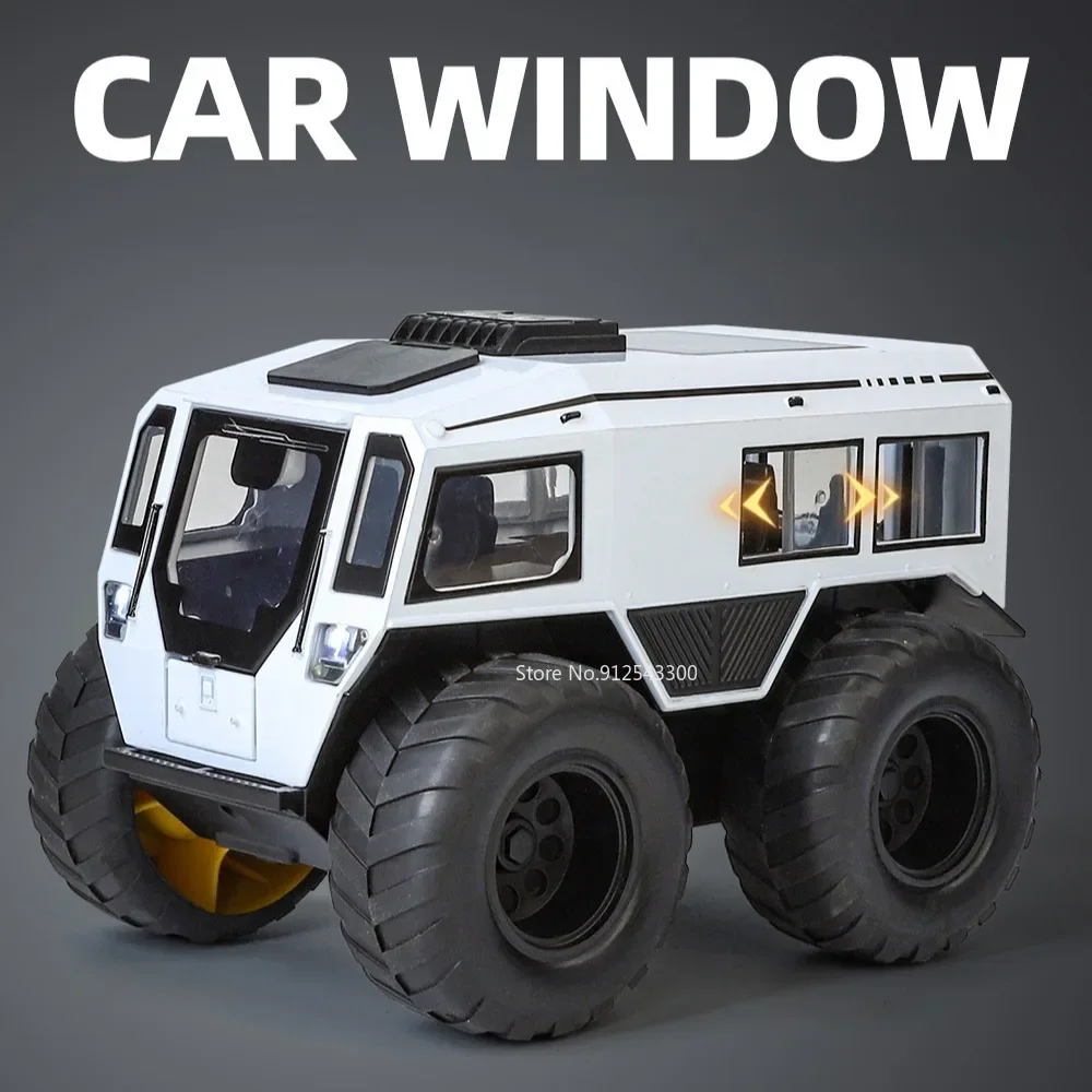 Experience the rugged realism of the 1/24 scale Russian Sherp all-terrain vehicle, crafted with a durable metal alloy body available in black, white, and yellow. Measuring approximately 15 x 11 x 10.5 cm, this high-simulation diecast model features a textured surface mimicking real panels, a sharply angular design, and large, deeply treaded rubber tires mounted on black wheel hubs. It boasts functional details, including openable doors, shock absorption, sound and light effects, and a pull-back motor. Perfect for off-road enthusiasts, this model is a striking addition to any collection, offering an immersive and authentic rugged adventure experience.