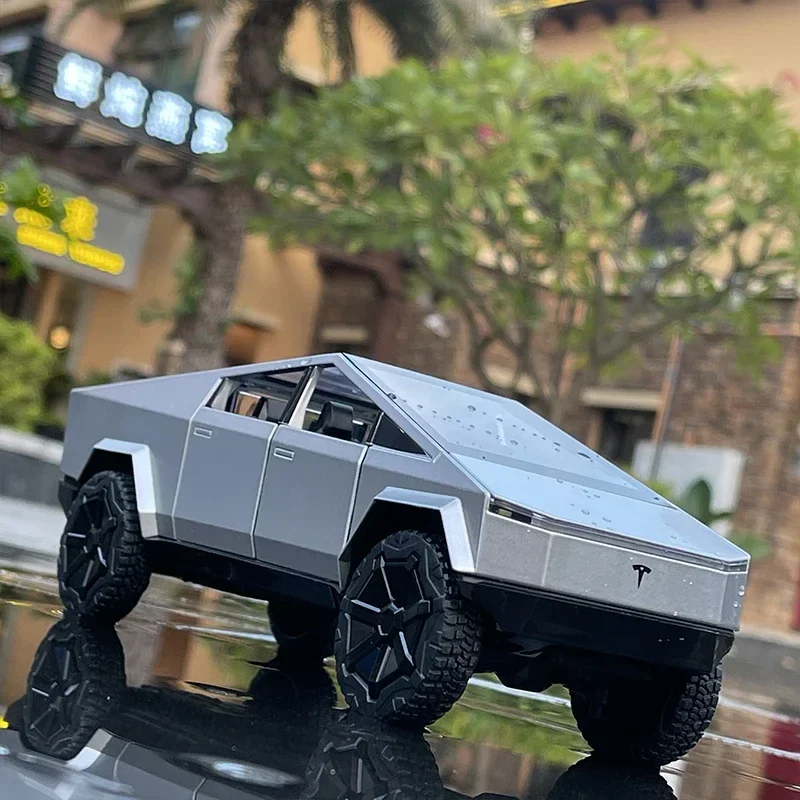 Experience the thrill of owning a highly detailed, miniature replica of a rugged pickup truck. Crafted from alloy and plastic, this 1:24 scale diecast model showcases a sleek silvery finish designed to capture the modern and durable aesthetic of an off-road vehicle. Its geometric lines, broad hood, and minimalistic front grille evoke a futuristic, bold appeal. Perfect for display, this collectible toy features functional sound and light components, adding realism to your collection. Its textured off-road tires and realistic details make it a perfect decorative piece or gifting item. Elevate your space with this premium model that’s built to impress and inspire admiration.