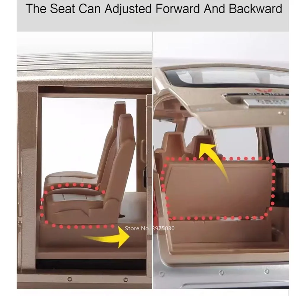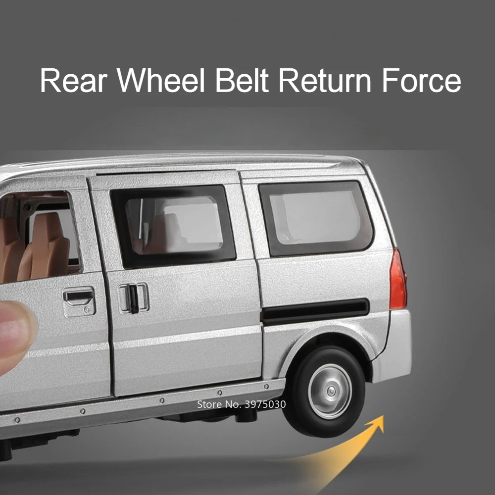 Experience the thrill of owning this highly realistic 1/24 scale diecast alloy van model, meticulously designed to capture the essence of a modern minibus. Its sleek metallic silver finish offers a sophisticated and polished look, perfect for collectors and enthusiasts alike. The vehicle's practical, boxy shape is complemented by subtle contours along the side panels, mimicking the genuine vehicle's curves. Detailed front grille and headlights enhance realism, while transparent plastic windows reveal an interior with warm brown seats. Rubber tires mounted on shiny alloy rims add to the durability and authenticity. With its functional features—sound, lights, and a pull-back mechanism—this model offers both display elegance and interactive fun. It’s an ideal gift for any car lover or collector seeking a high-quality miniature.