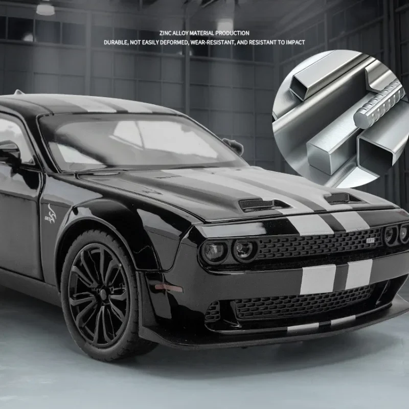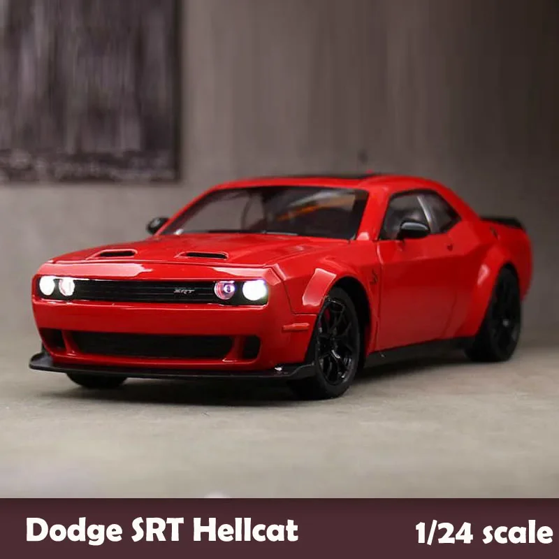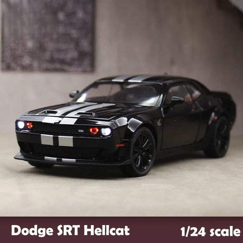 Experience the thrill and realism of the 1/24 scale Dodge Challenger SRT Hellcat alloy car model, crafted meticulously for adult collectors and enthusiasts. This detailed miniature features authentic metal construction, showcasing the powerful design and sleek lines of the real vehicle. Perfect for displaying in your collection or as a stunning decorative piece, it combines durability with aesthetic appeal. The model produces realistic sound and light effects, enhancing your experience with every glance. Its compact size, combined with high-quality materials, ensures it remains a treasured item for years. Whether for display or collection, this model brings the iconic Dodge Challenger SRT Hellcat to life in your space.