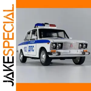 Step into the world of vintage Soviet-era police vehicles with this meticulously crafted 1/24 scale die-cast model of the LADA 2106. Made from durable alloy, it features a sleek white finish enhanced by vivid blue and orange accents. The sides proudly display Cyrillic lettering “ПОЛИЦИЯ” with vehicle numbers and abbreviations, capturing an authentic look. The front showcases a detailed grille with a red badge, while the clear headlights add realism. The black bumper includes metallic details, and the transparent windows reveal a glimpse of the interior. An emergency light bar with vibrant red and blue lights tops the vehicle, completing its striking appearance. This collectible makes a perfect gift for enthusiasts and adults who appreciate vintage automotive design.