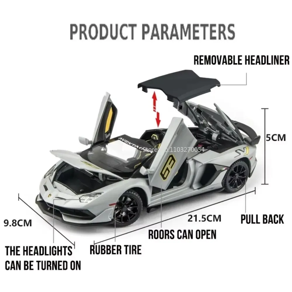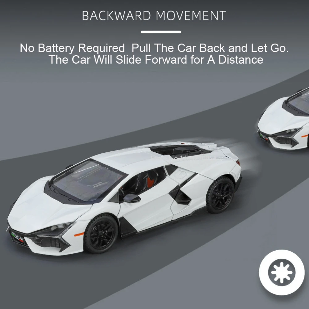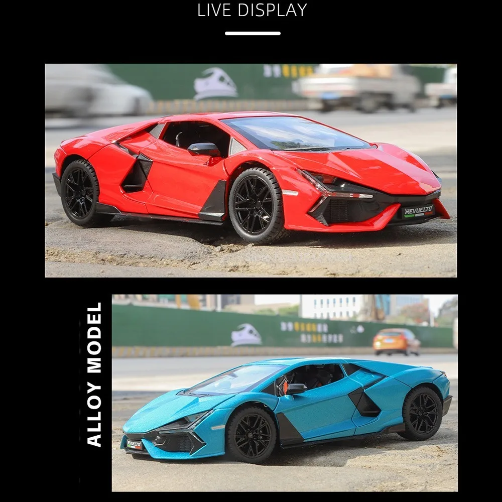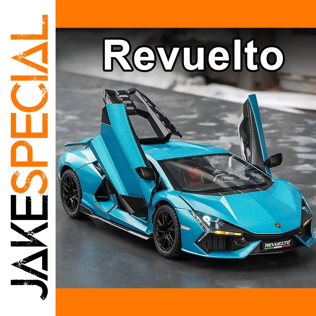 - Authentic 1/24 scale replica featuring a detailed metal body, with precise design and coloration that captures the essence of the Lamborghini Revuelto’s unique style.