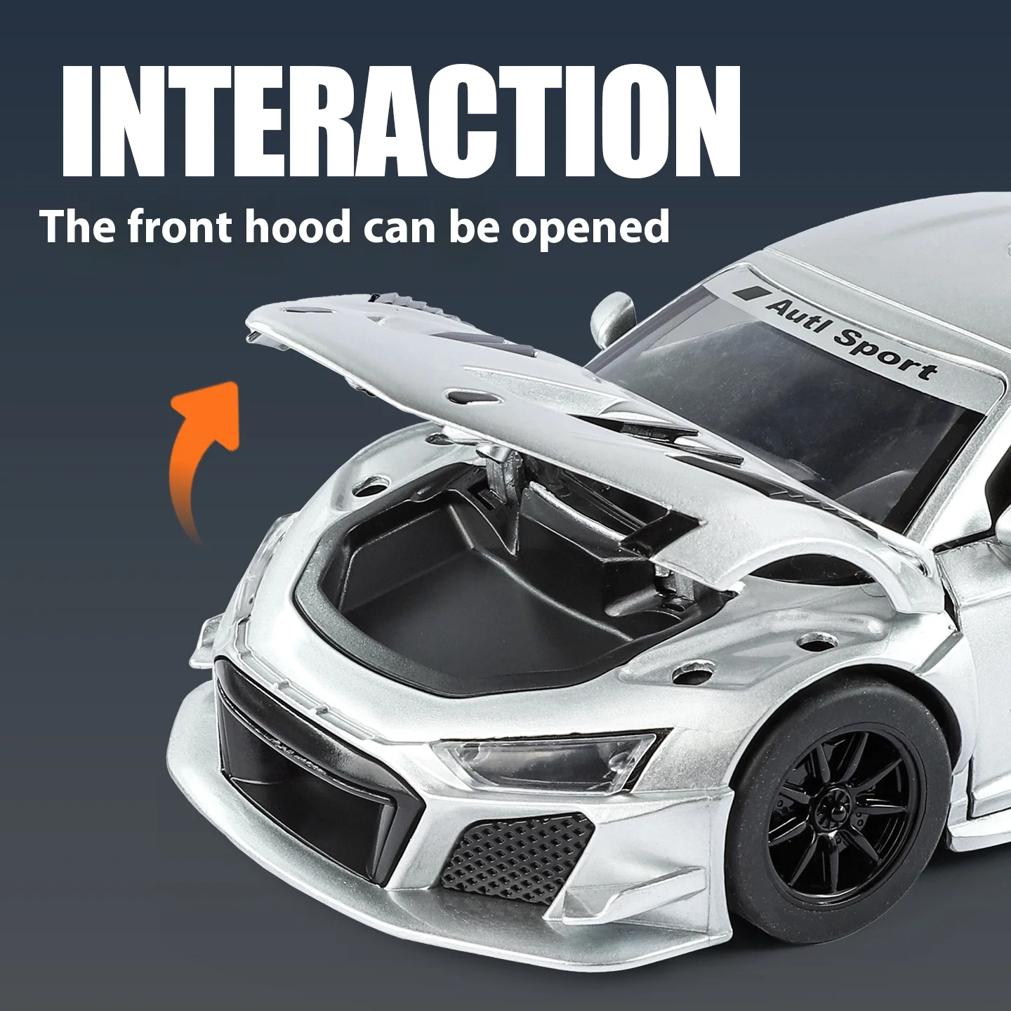 - Detailed hood with prominent vents for a racing look.