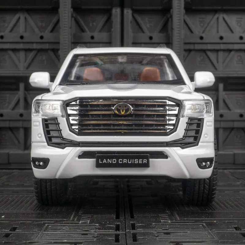 This meticulously crafted 1/24 scale diecast model of the Toyota Land Cruiser brings a piece of adventure right to your display. Finished in a sleek white color with striking chrome accents, this SUV model captures the essence of real off-road capability. The stunning details, such as the black grill and realistic headlights, elevate its realism, while the clear windows reveal a beautiful interior featuring rich brown leather seats. Built from durable alloy, this model not only looks fantastic but feels sturdy in hand, making it a perfect addition to your collection or a thoughtful gift for enthusiasts.