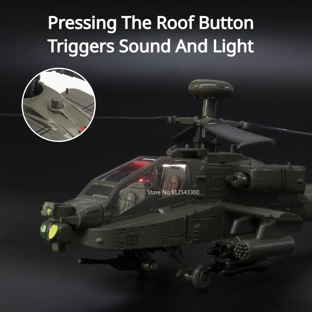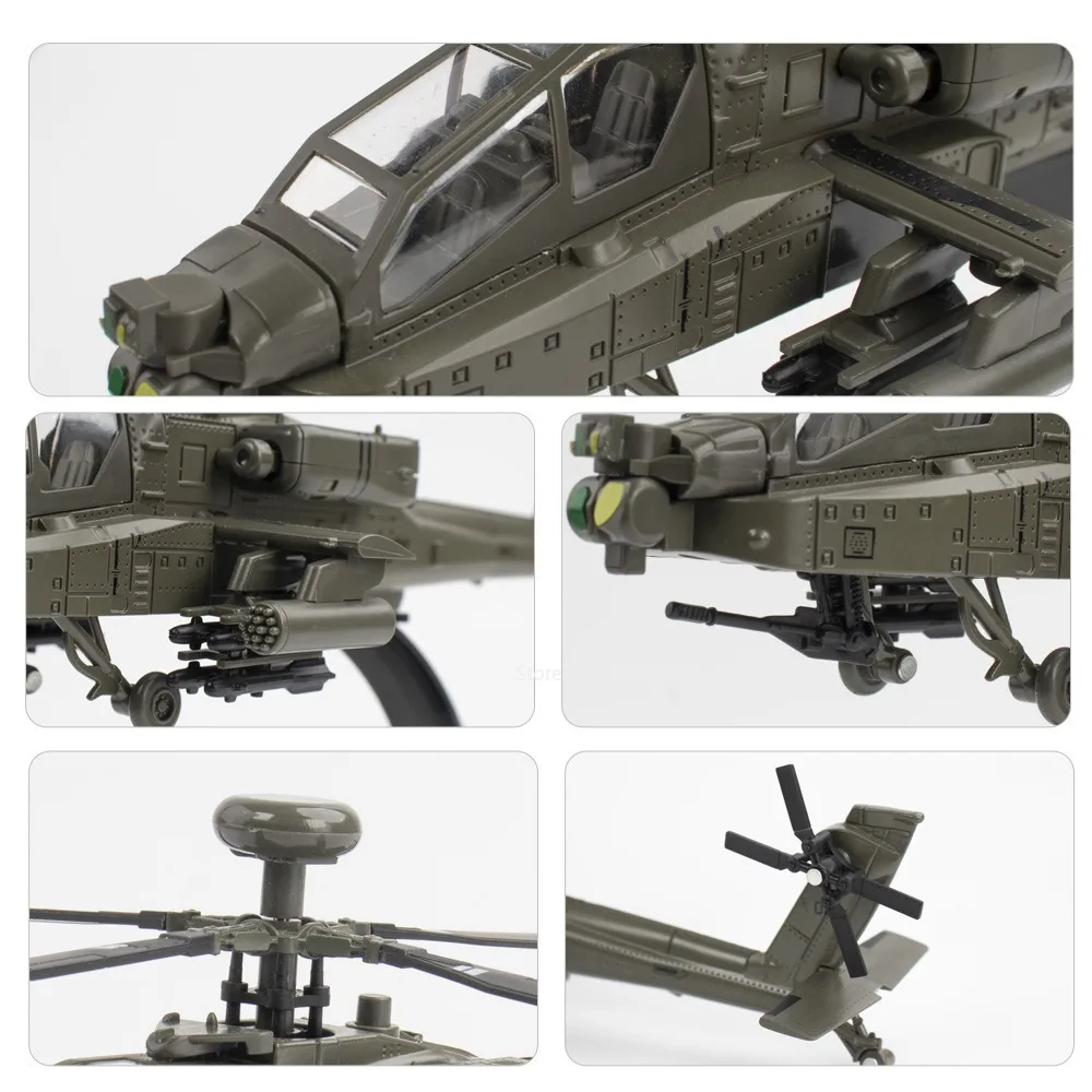 Imagine adding this stunning 1/32 scale AH-64A helicopter model to your collection, each detail crafted to evoke the rugged beauty of a military attack helicopter. Its sleek, elongated fuselage and angular, transparent canopies provide an authentic appearance, while textured panels and rivets enhance the rugged, high-simulation aesthetic. The model boasts functional rotatable main and tail rotors, allowing you to display it in action-ready poses. The sturdy alloy body ensures durability, making it suitable for display or play. With integrated sound and light effects, the model comes alive, offering an engaging experience. Whether you’re a military aircraft enthusiast or a collector, this detailed figurine will elevate your display and inspire admiration.