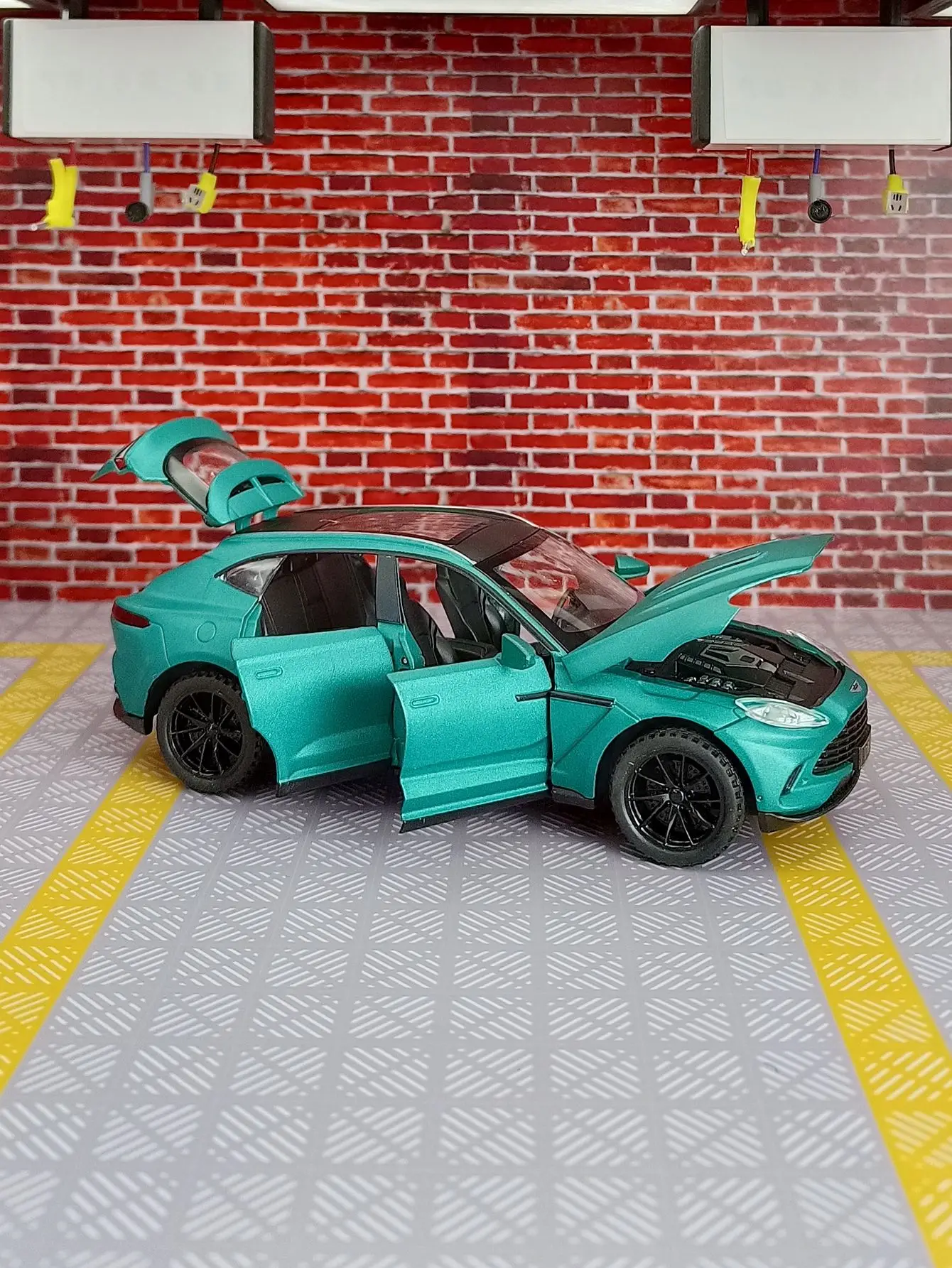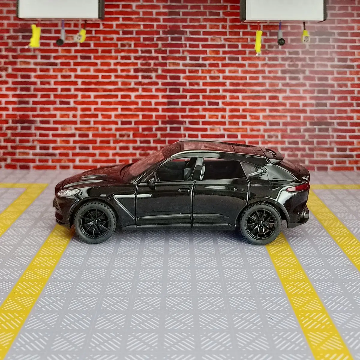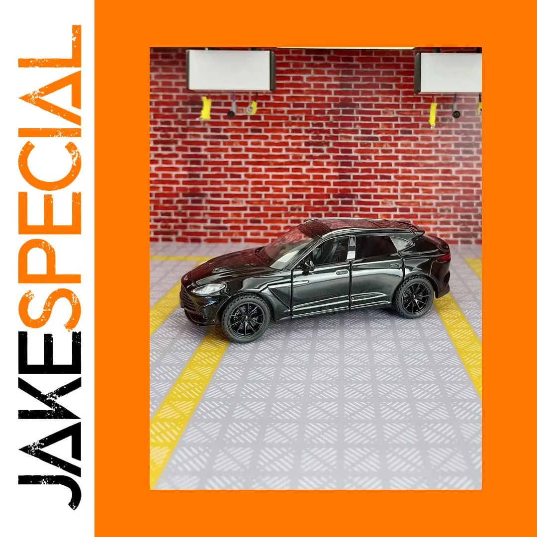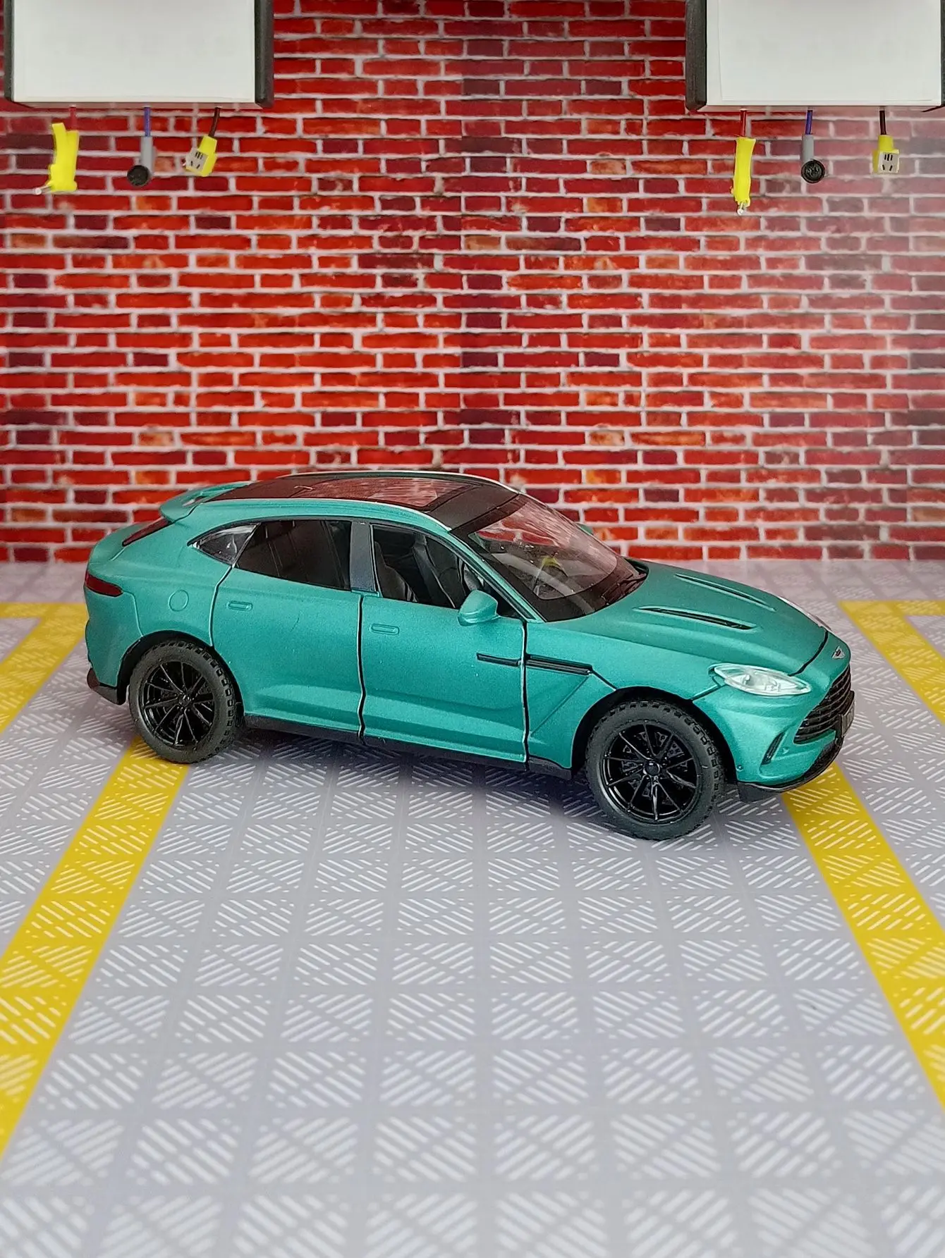 This 1/32 scale diecast Aston Martin DBX SUV miniature model is crafted from metal, featuring a sleek, glossy black finish that highlights its aerodynamic design, detailed headlights, taillights, and front grille. Available in black, green, and blue, this collectible item boasts multi-spoke rims with a matte black tone and tires with realistic tread patterns. Its compact size and refined craftsmanship make it perfect for display, gifting, or adding a touch of luxury to your collection. Certified with a CE certificate and made without high-concern chemicals or batteries, this model offers a sophisticated and authentic aesthetic for adult collectors and enthusiasts.