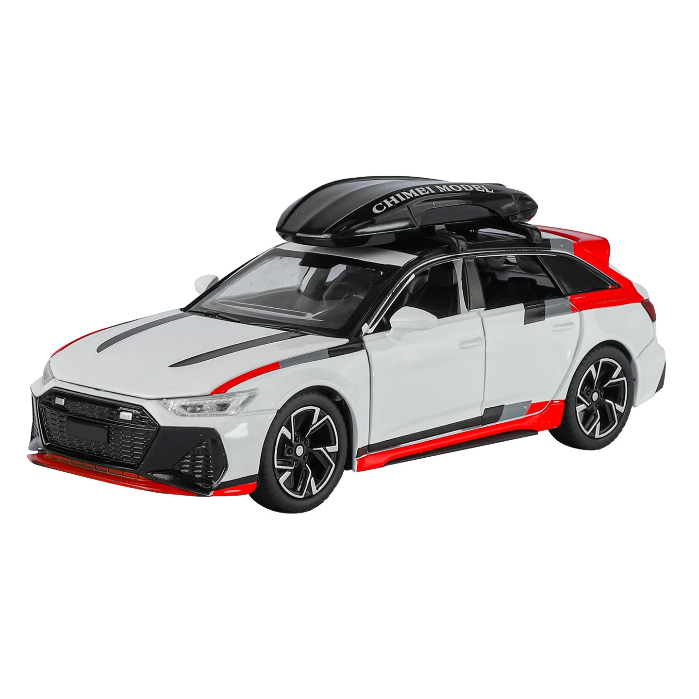 - This 1/32 scale diecast alloy RS6 Avant model replicates the full-size car’s sporty style with detailed body panels, aerodynamic accents, and authentic accents like the honeycomb grille and angular headlights.