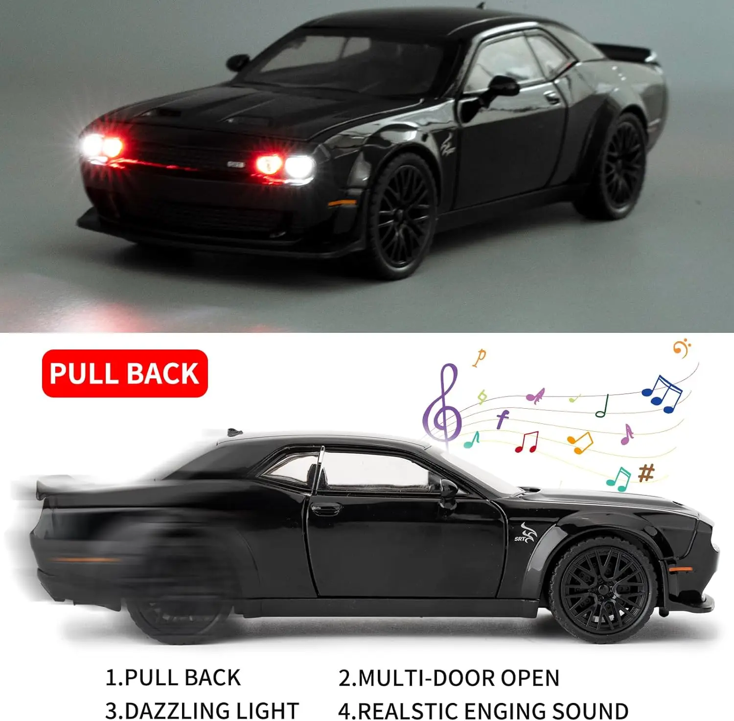 By choosing this intricately designed Dodge Challenger Hellcat model, you bring home a piece of high-performance automotive style that is both a beautiful display and an engaging toy. Its realistic details, combined with fun light and sound features, provide a perfect way to celebrate your love for racing cars or to gift a passionate enthusiast. Whether for a collection or a playful addition to a child's toy box, this model offers durability, authenticity, and excitement. Don't miss the chance to own this fantastic miniature that truly captures the essence of the iconic muscle car.