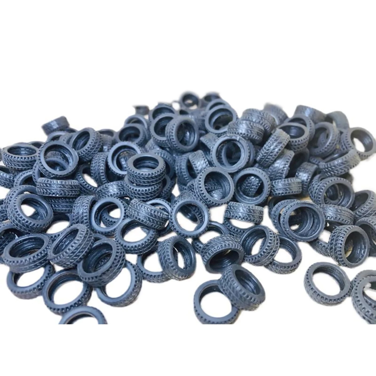 Enhance your diorama or model car collection with this set of 50 high-quality black rubber tires designed for 1/32 scale vehicles. Each tire features a detailed tread pattern that mimics real vehicle tires, adding authentic realism to your display. With a precise 20mm diameter and 8mm width, these tires are ideal for creating miniature car scenes, showcasing your craftsmanship or completing a model project's look. The smooth, matte finish provides a realistic appearance, while the hollow center allows seamless fitting onto compatible metal car models. Made from durable rubber, these unaffected tires are perfect for collectors seeking detailed, realistic accessories for their dioramas without sacrificing quality or authenticity. Enjoy creating intricate automotive scenes with reliable, scale-accurate tires.