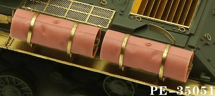 Enhance your collection with this highly detailed 1:35 scale model of the Russian JS-2 heavy tank’s oil tank group by Yan Model. Crafted from durable plastic, this meticulously designed miniature features a realistic matte military green finish, accentuated with light pinkish-beige cylindrical oil tanks secured by gold-colored bands. Additional features include grated panels, engine cooling vents with parallel slats, a rounded turret with refined details, and intricate small fixtures like bolts, hooks, and hinges that add authenticity. Perfect for enthusiasts aged 12 and up, this precision model captures the rugged, functional aesthetic of the original, making it a striking addition to any military model collection.
