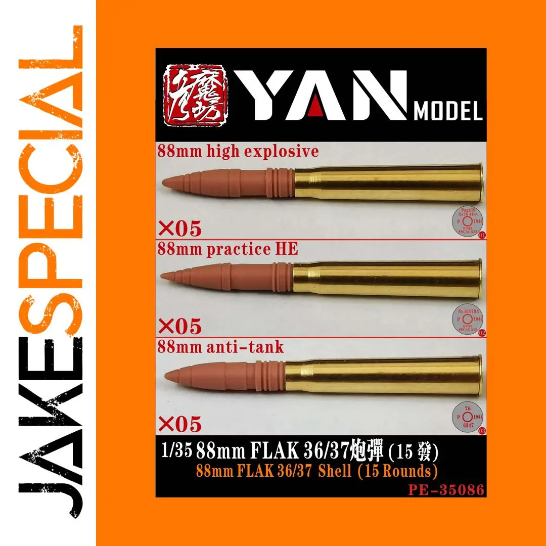 Enhance your military model collection with this detailed set of 15 shells, precisely designed for 88mm FLAK 36/37 guns. Crafted from high-quality plastic, each shell features a realistic combination of matte terracotta-colored projectiles with detailed ridges and grooves, paired with shiny metallic gold casings that reflect light naturally. The shells are arranged in three distinct groups—high explosive, practice HE, and anti-tank—each containing five units, meticulously aligned to showcase uniformity in size and shape. This authentic appearance allows you to recreate realistic battlefield scenes with accuracy and finesse. Perfect for model enthusiasts and hobbyists aged 12+, this set reflects professional craftsmanship from Hong Kong and offers exceptional detail to bring your model project to life. Whether you're a seasoned builder or a dedicated hobbyist, this set is an essential addition to your military diorama collection.
