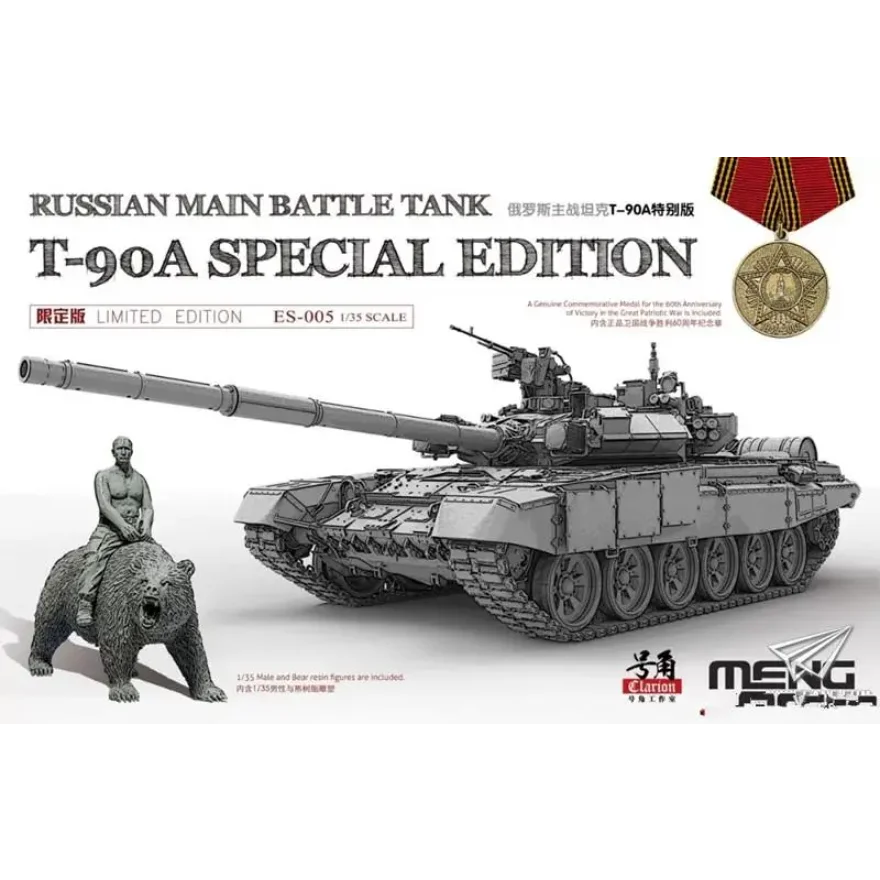 Enhance your collection with this detailed 1/35 scale plastic model of the T-90A Russian main battle tank, a special edition by Meng (model number ES-005). Crafted from durable plastic, this highly realistic ornament features an accurate depiction of the modern armored vehicle, including a long gun barrel, intricate turret details, and realistic tracks and road wheels. Designed for enthusiasts aged 14 and above, it offers a perfect combination of authenticity and quality, showcasing Meng’s craftsmanship. Whether displayed as a stand-alone piece or integrated into a larger diorama, this model captures the commanding presence of the T-90A, making it an essential addition to any military model collection.