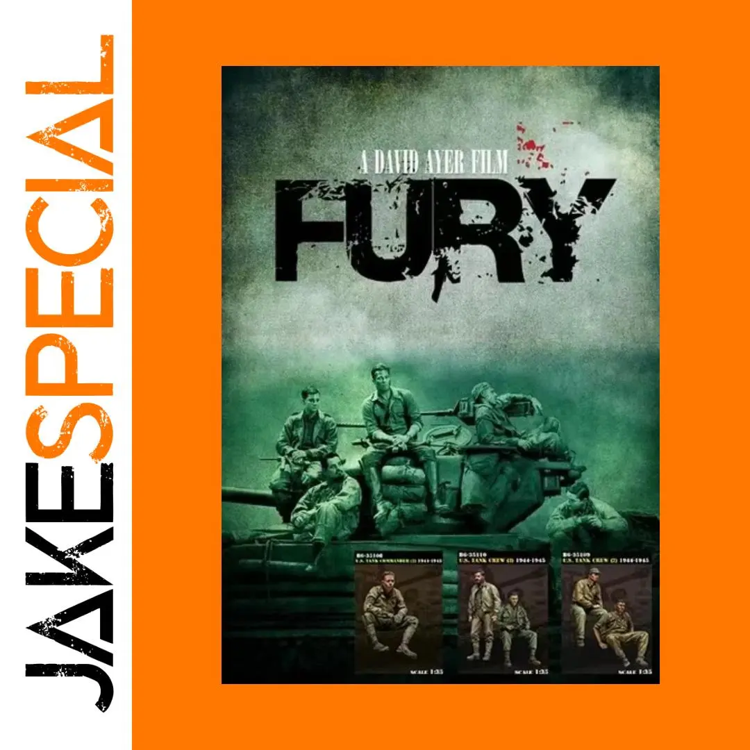 - This set includes five unassembled, unpainted resin figures representing WWII U.S. tank crew members inspired by the film Fury, ideal for customization and painting hobby projects.